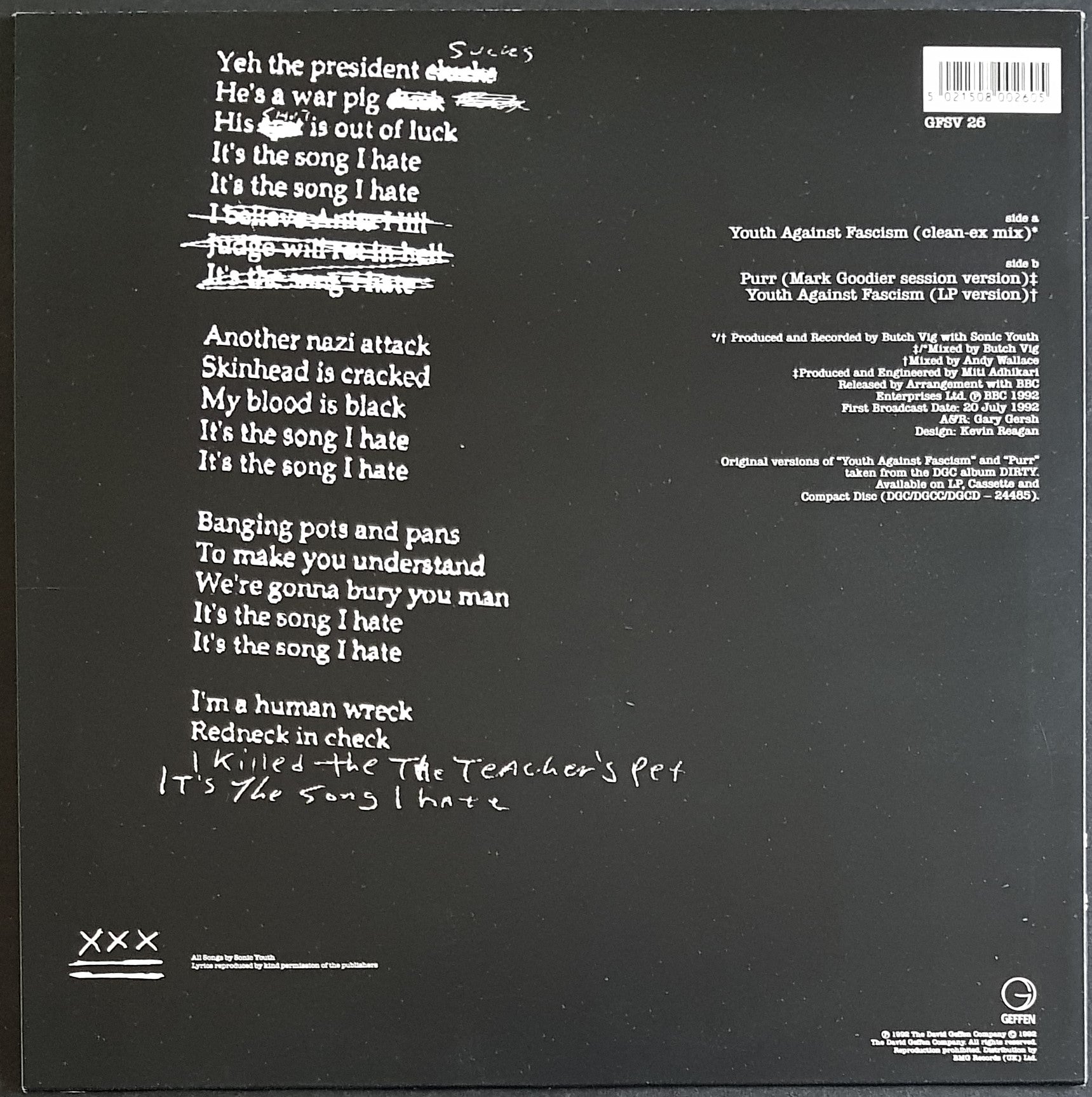 White Vinyl in Numbered PS. 1992 Geffen GFSV 26. Creasing On Sleeve