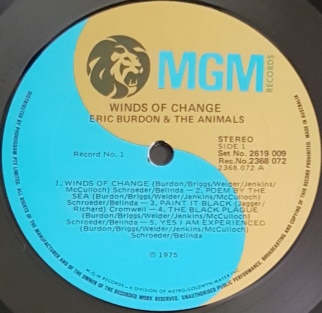 Eric Burdon And The Animals - Winds Of Change / The Twain Shall Meet