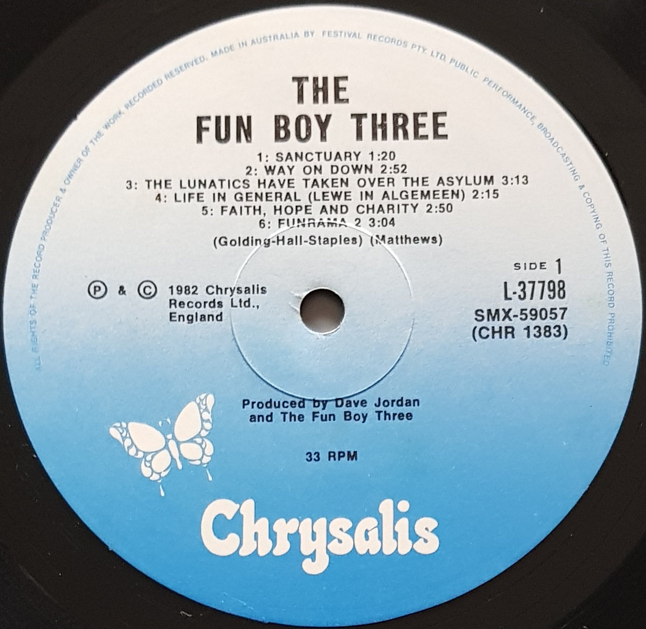 w.Poster (has been hung up and has blutak stains on rear). 1982 Chrysalis L37798. Cover has water stains, minor surface wear, creases and corner wear
