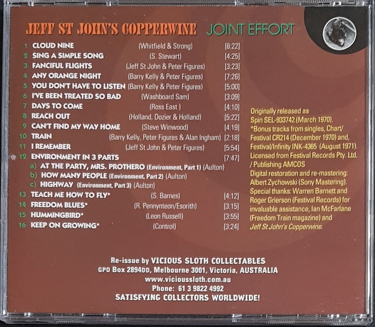 Long Out Of Print. 2000 Vicious Sloth Collectables VSC013. Tracks Restored Form Original Master Tapes. This CD Features A Very Diverse Musical Influence Throughout, From Blues to Soul to Delicate Psych. With 4 Bonus Tracks. Minor scuffs on disc