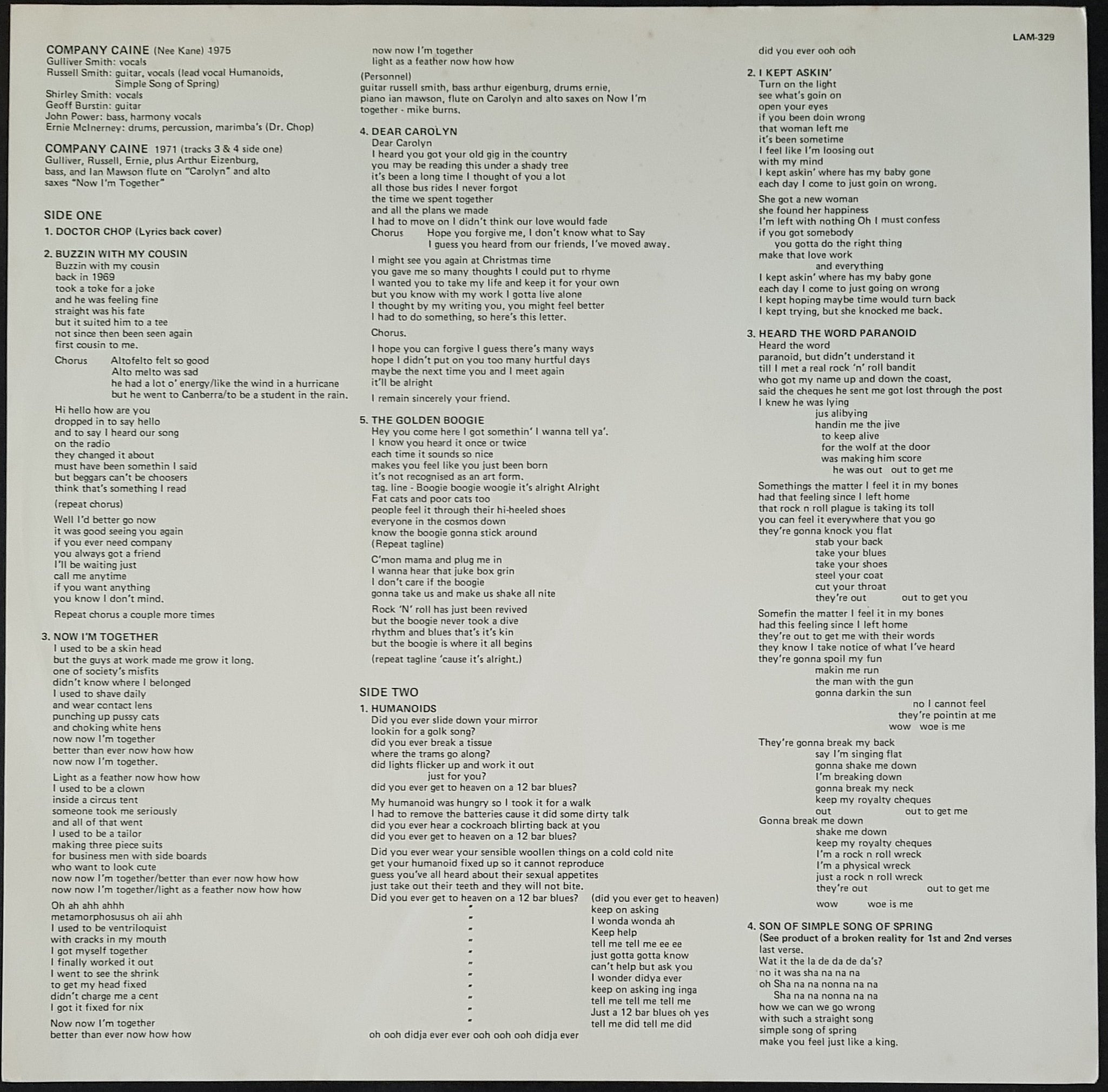 w.Insert 1976 Lamington LAM-329. Cover has diagonal crease across it, handling creases and blistering to laminate. Scuff across end of S1 Tk.3 and Start of Tk.4 will sound, minor scuffs and small pit at end of S1 Tk.4 too.