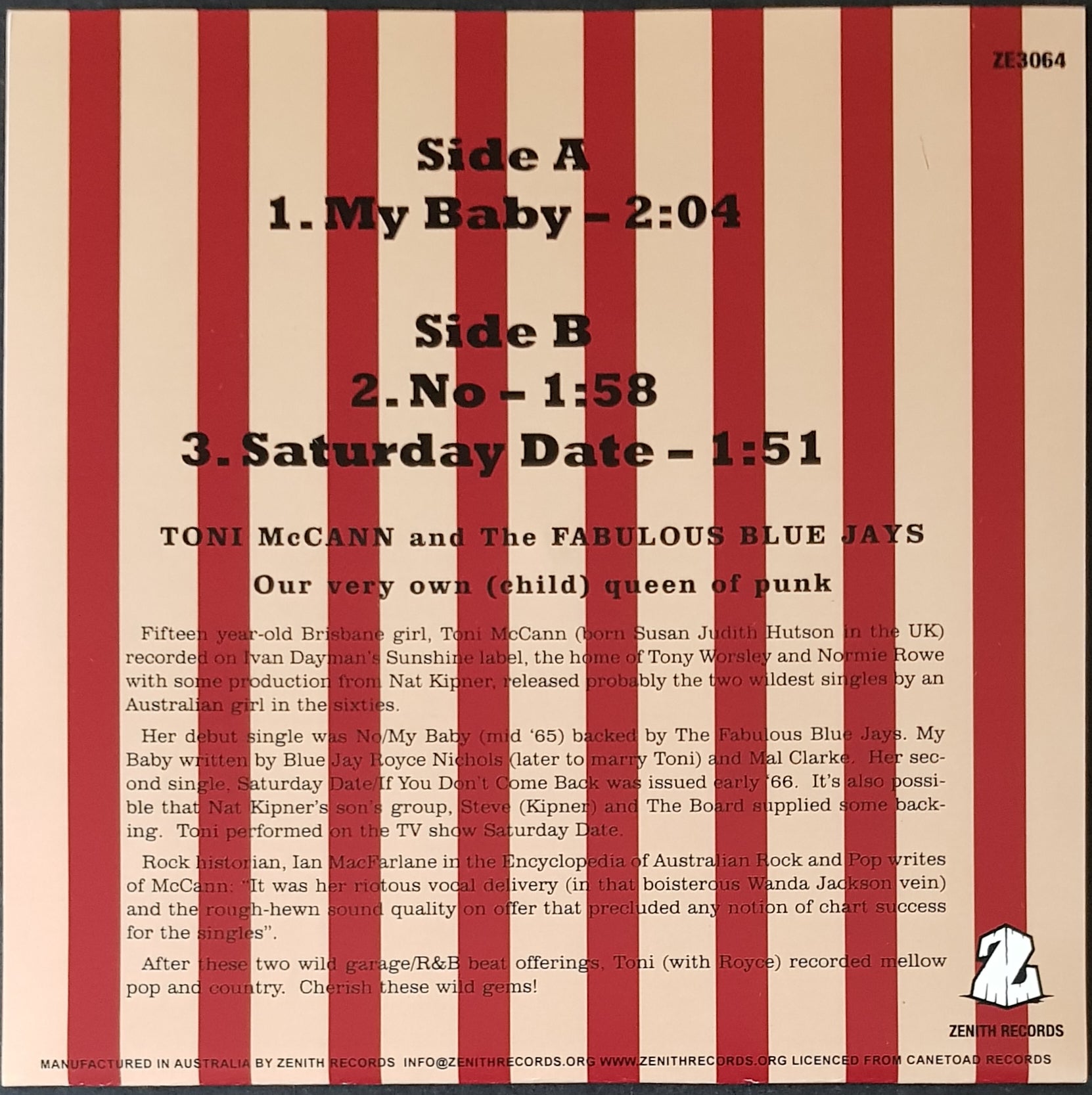 EP PS. 2008 ZENITH ZE3064. One of 200 only copies on Ice blue coloured vinyl