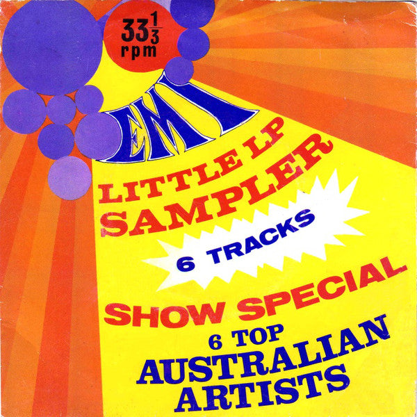 6 Track w.PS. 1969 Red & Silver COLUMBIA Label SPR-2. Issued To Raise Money For Charity It Features Shame Shame (only available on this EP). Features The Twilights, The Groove, John Farnham & Little Pattie. Very Rare EP. Archive copy has remnants of reference tag on sleeve edge.