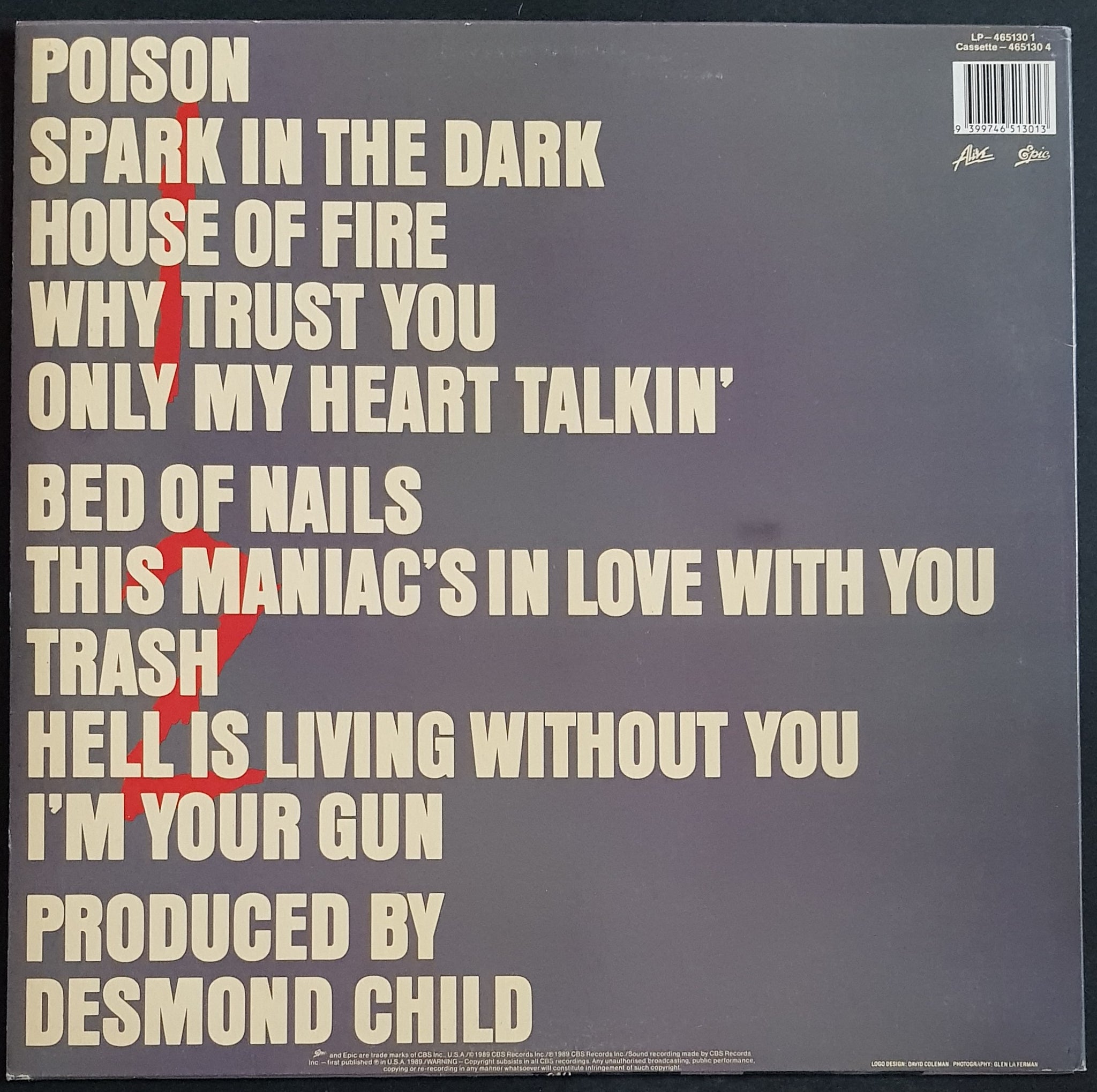 w.Inner Sleeve. 1989 EPIC 4651301. Small price tag glue stain on front cover. Small scuff on Side 2.