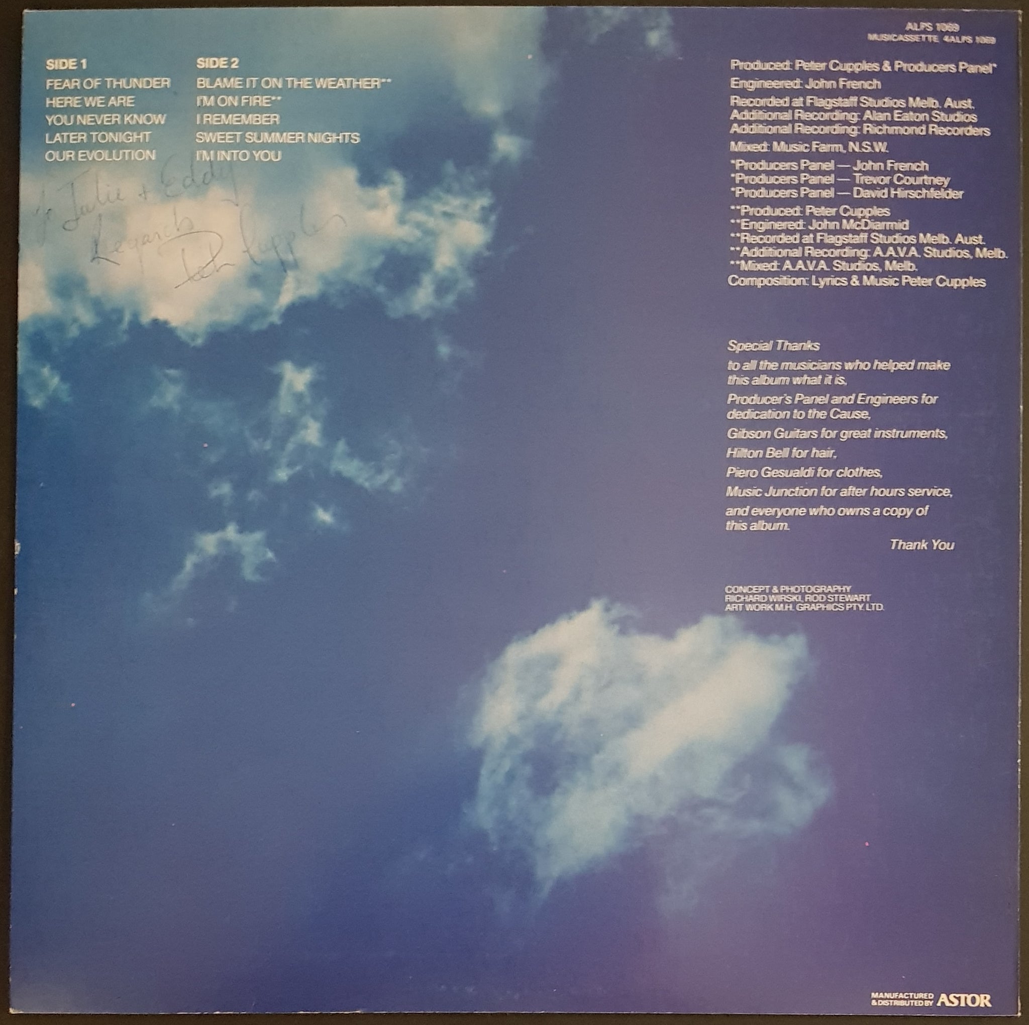 w.Inner. 1981 Astor ALPS1069. Ring and Surface Wear on Cover. Signed on Back 'To Julie & Eddy Regards' by Peter Cupples