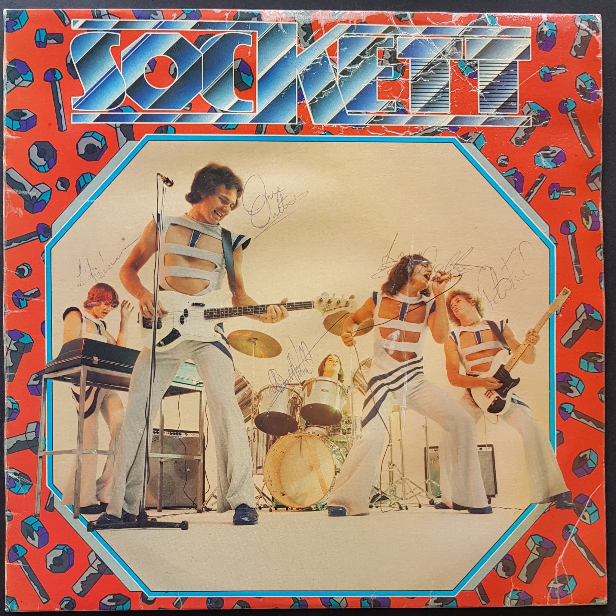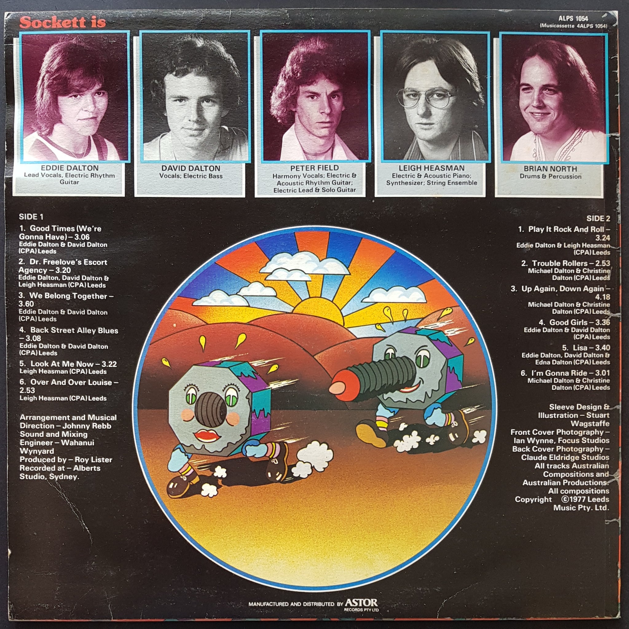 1977 ASTOR ALPS 1054. Obscure Glam Rock From Down Under. Record is very clean with minor handling marks, but there are 3 small light surface marks on side 2 that cause minor crackle. Cover has corner creases, minor foxing & rippling from moisture. It is also signed by all 5 band members.
