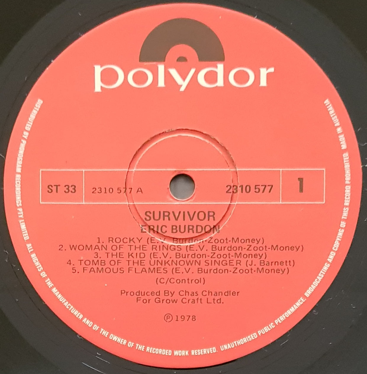 1977 Polydor 2310 577. Autographed by Eric on front cover with thick black marker in 1984. Cover has surface and ring wear. Edge wear along bottom seam and light creases along spine.
