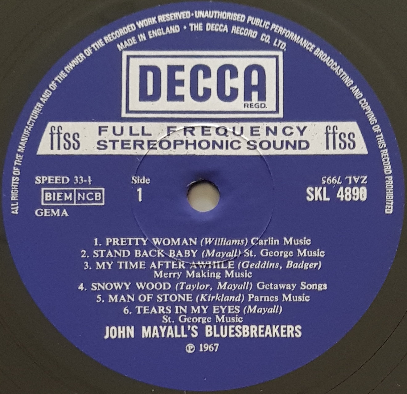 Reissue Decca SKL 4890. Signed on Cover by John Mayall & Mick Taylor in thick black marker pen. Cover printed by Robert Stace. Ring Mark on Cover