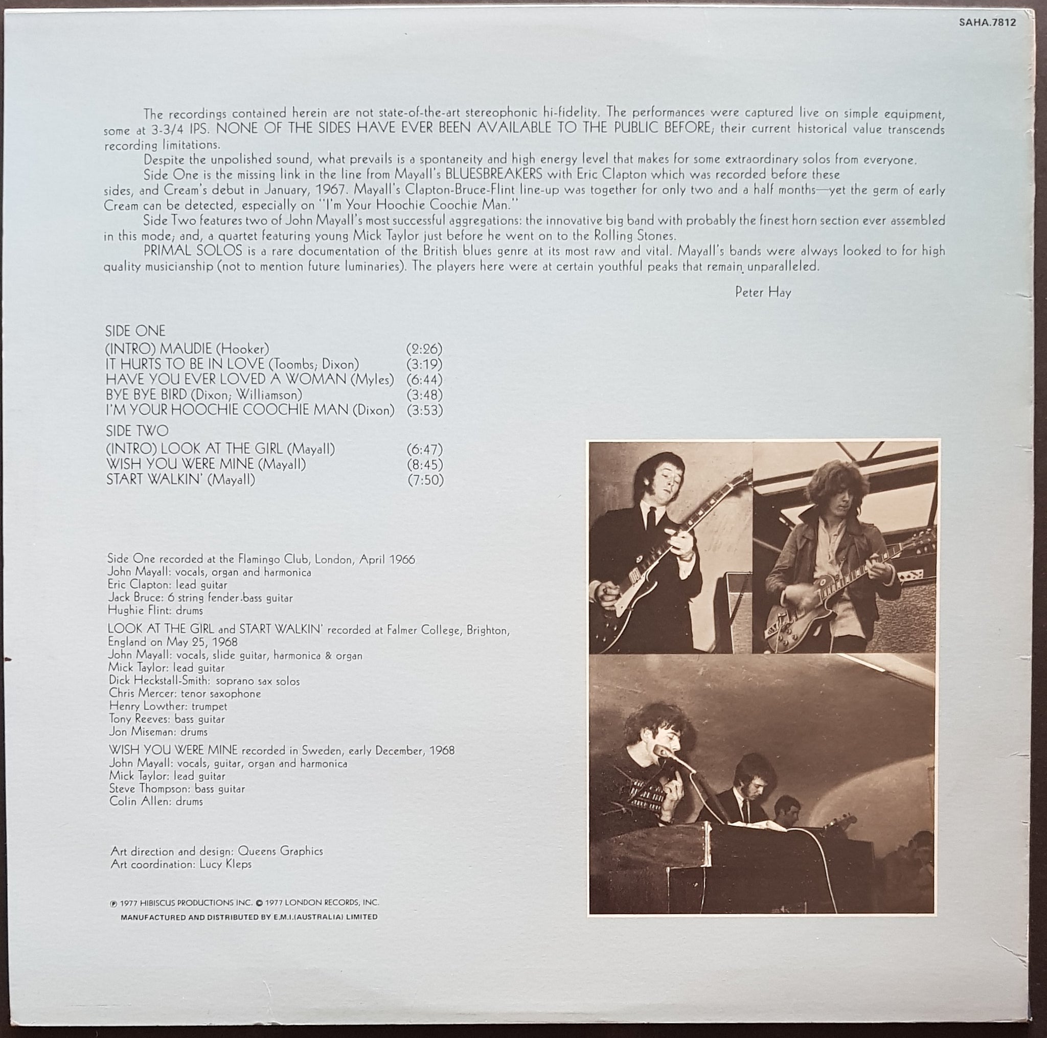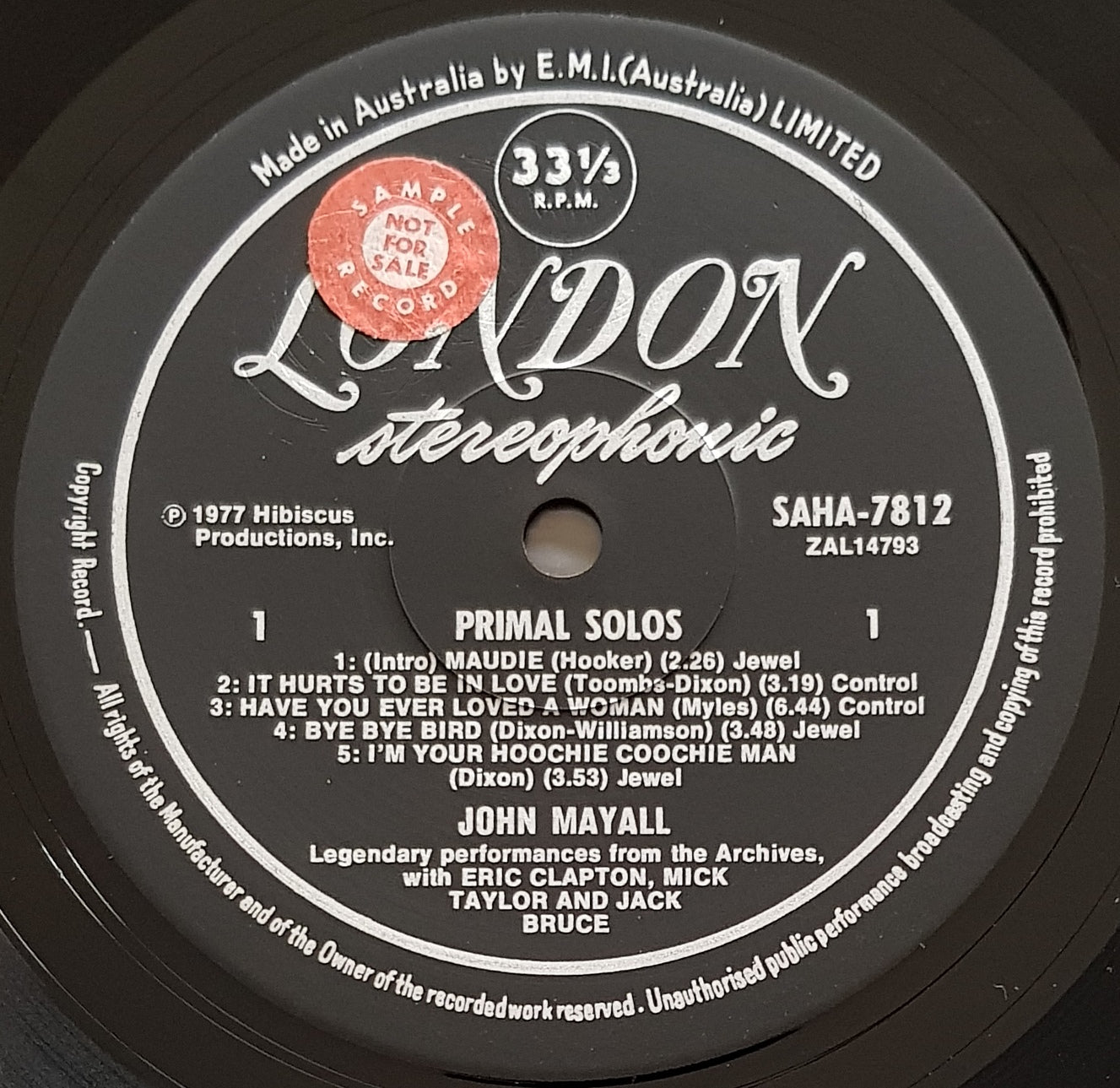 1977 London Records SAHA-7812. Signed on Cover by John Mayall in thick black marker pen. Minor Wear on Cover. Sample Sticker on Label