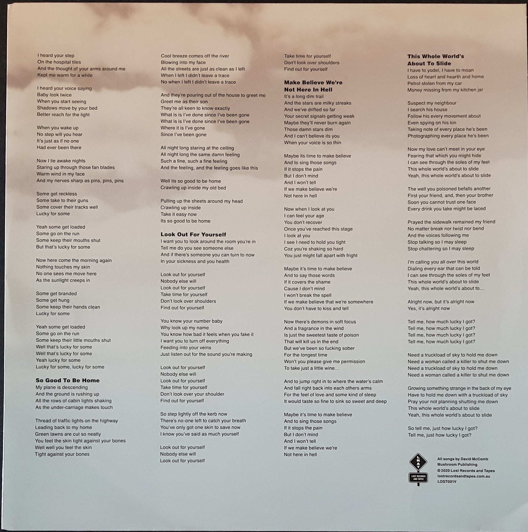 w.Inner Sleeve & Insert. 2020 Lost Records And Tapes LOST001V. Cover has crunched corner and wear along opening. Signed on Back Cover by Rob McComb, Romy Vager, Phil Kakulas, Rob Snarski, E G Lee, Alex Gow & Angie Hart.
