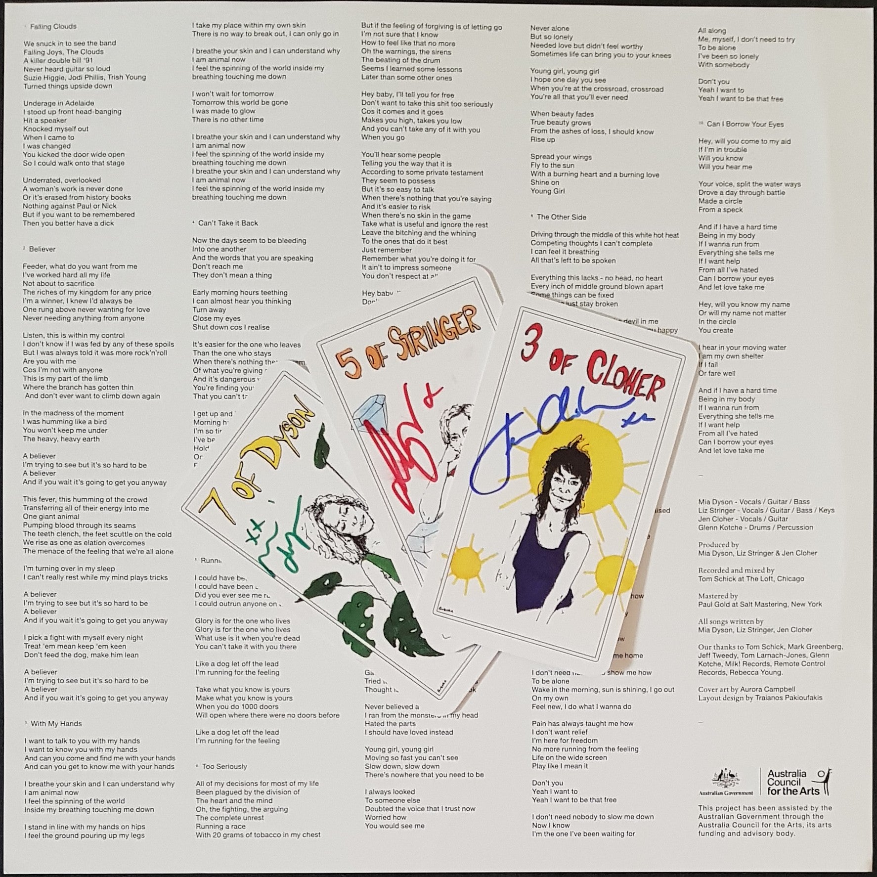 w. Insert & 3 Signed Playing Cards. 2019 Milk! Records MILK045LP. Also Signed by all 3 on back cover, 2 are personalised. Collaboration with Mia Dyson & Liz Stringer.