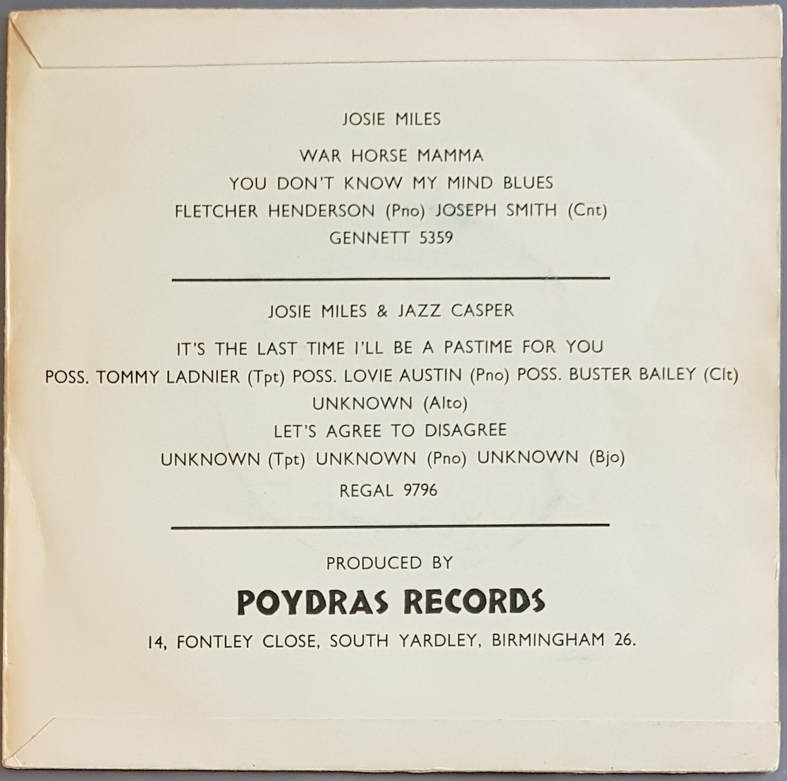EP PS. Split with Josie & Jazz Casper Tracks. 100 Only Made POYDRAS Records 103. Green Sleeve Has Slightly Browned On One Edge.