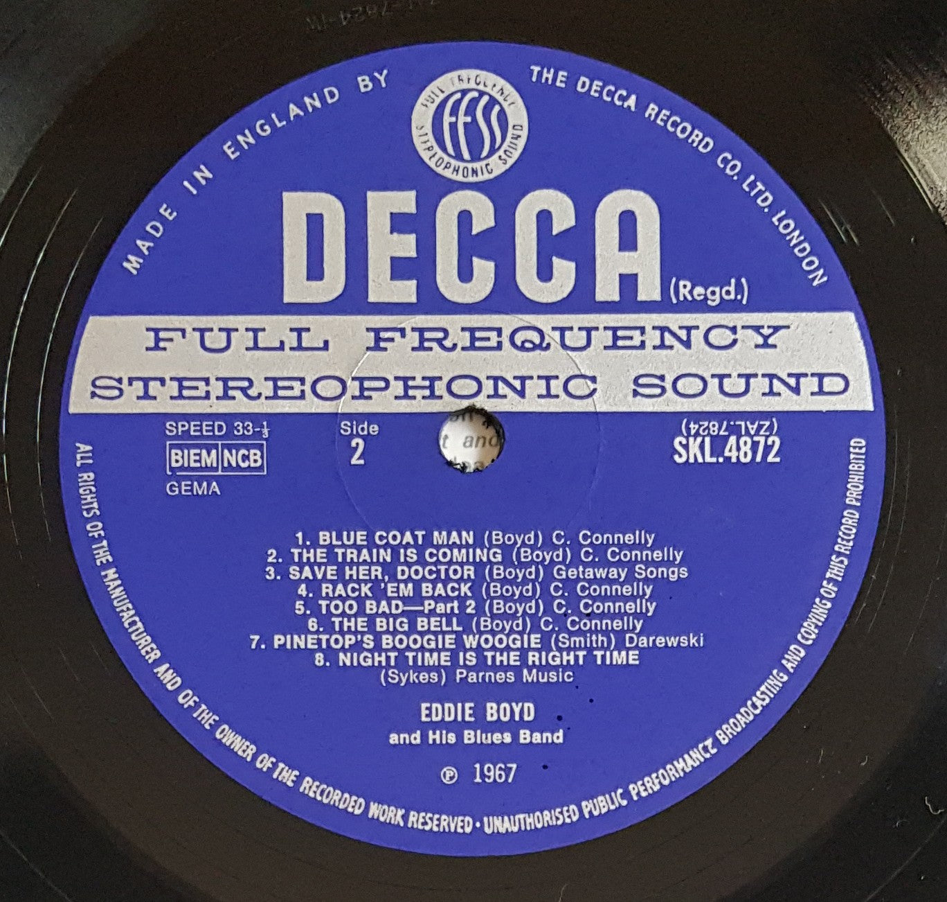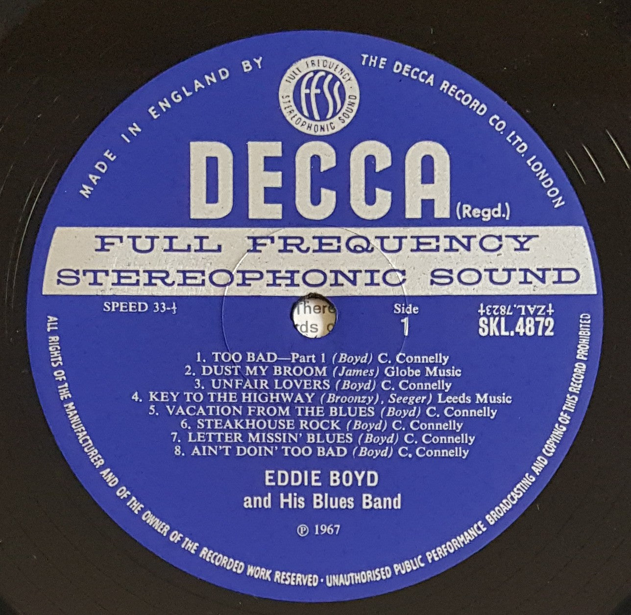 1967 Decca SKL.4872. Laminated front cover is nice and glossy with handling crease on front cover and light creases along spine. Back cover is bright and white. Minor scuffs on disc. One small mark Side 1 Tk.1 makes 2 or 3 minor ticks.