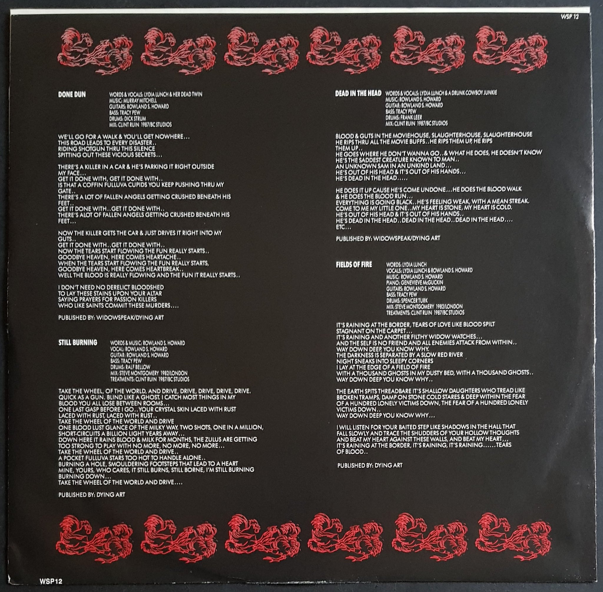 w.Inner Sleeve (Split Seams) & Insert. 1987 Widowspeak Productions WSP-12.Cover has partially faded spine. Features Tracey Pew, Thurston Moore & Lydia Lunch.