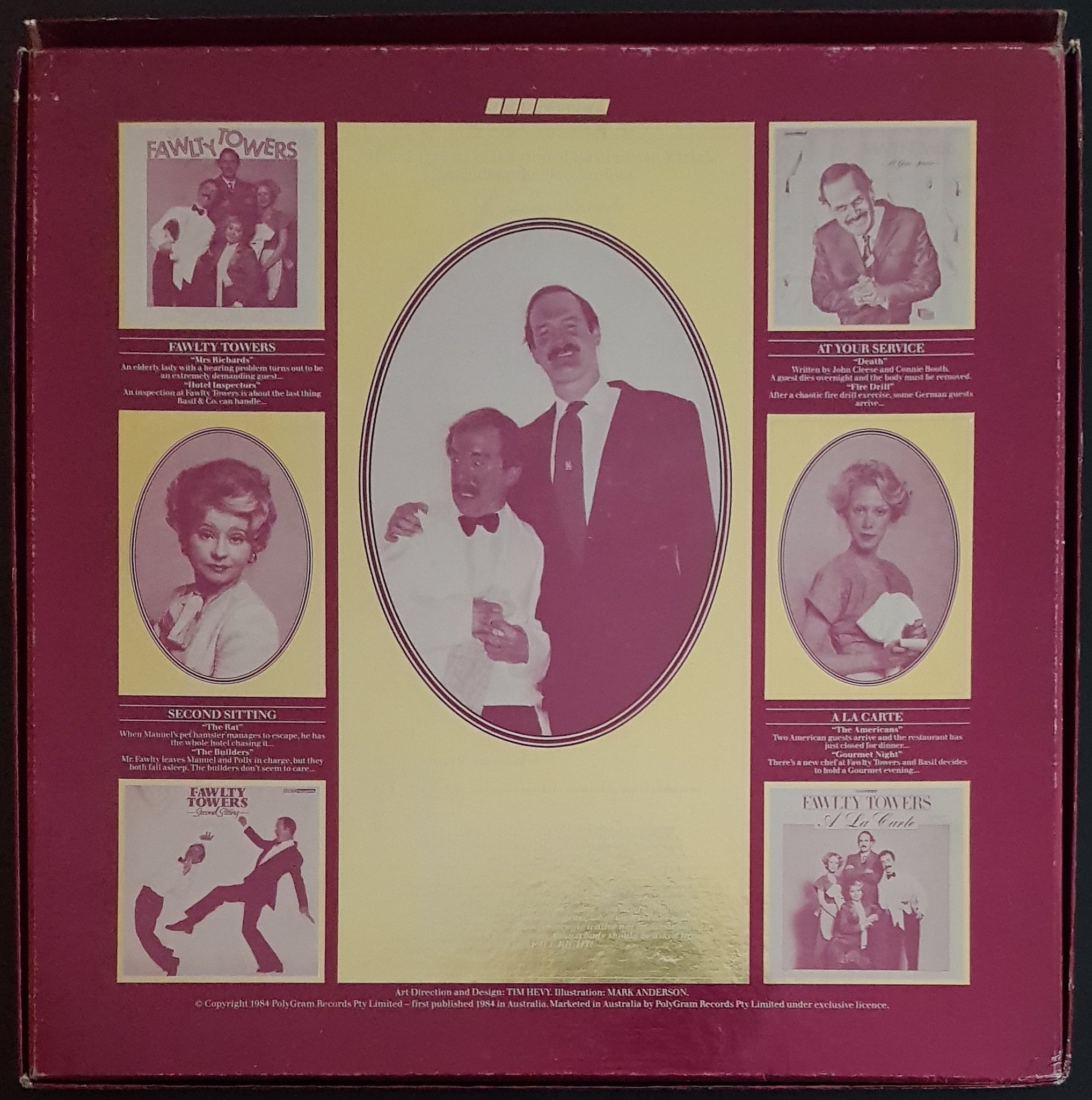 Box Set w.'Fawlty Towers' 'A La Carte' 'At Your Service' & 'Second Sitting'. 1984 BBC Records / PolyGram 817 929-1. Box Cover is VG with minimal wear and 2 split corners on lid. It's not trashed.
