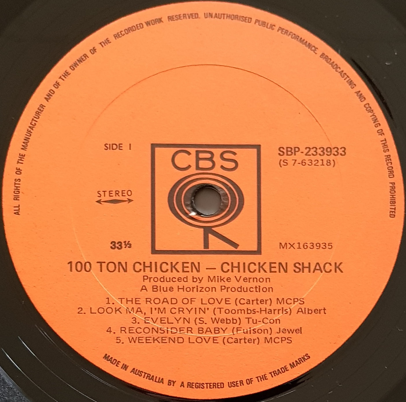 Original Orange CBS Label SBP 233933. Minor Wear & Foxing on Back Cover.