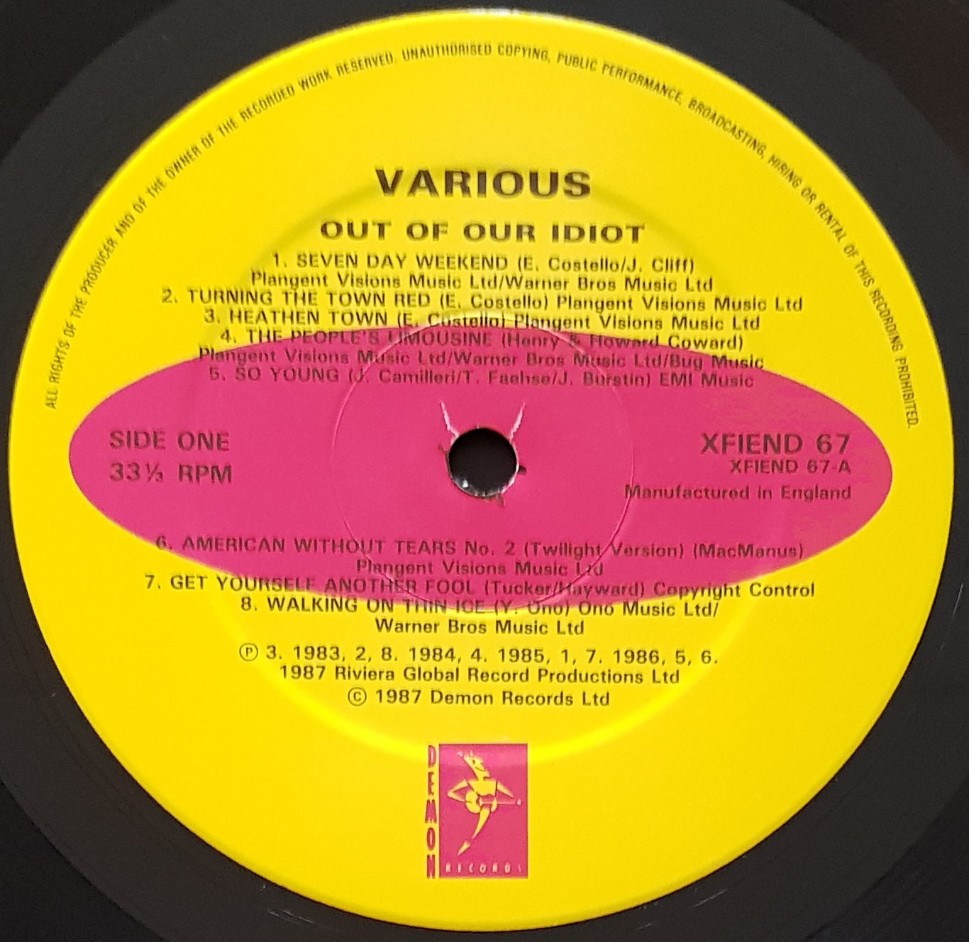 w. Inner sleeve. 1987 Demon Records X FIEND 67.