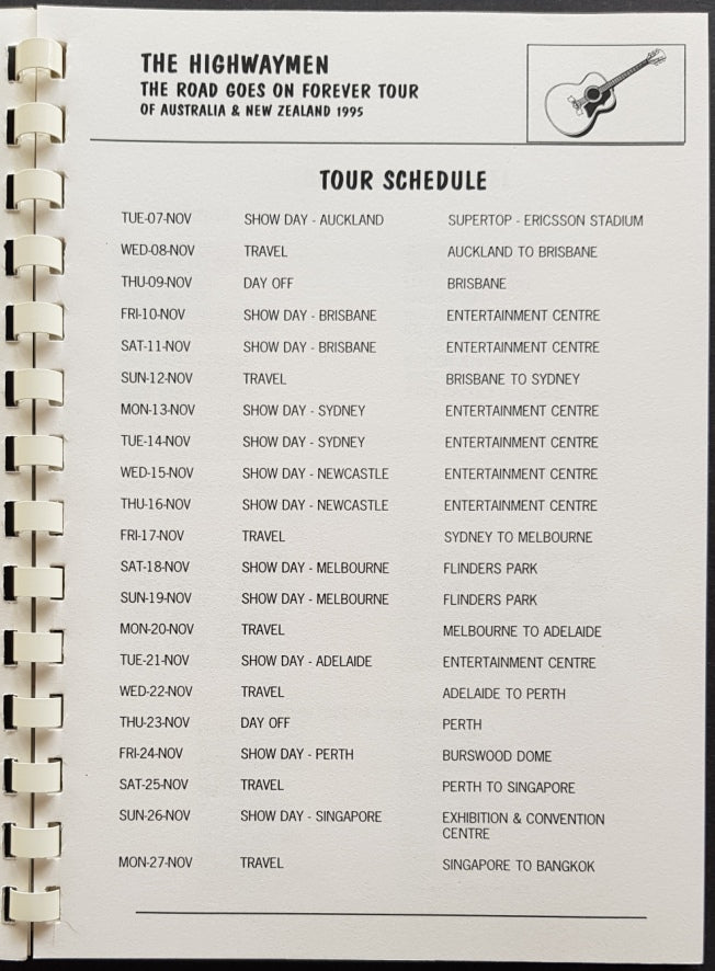 40 page Spiral Bound Booklet. For Highwaymen Tour with Willie Nelson, Waylon Jennings & Kris Kristofferson.
