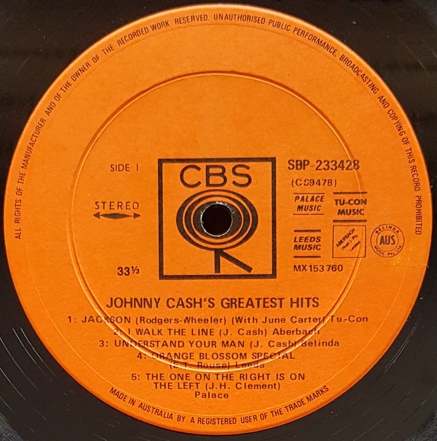 Orange CBS SBP233428. Stereo "360 Sound" on the front sleeve, centre top.