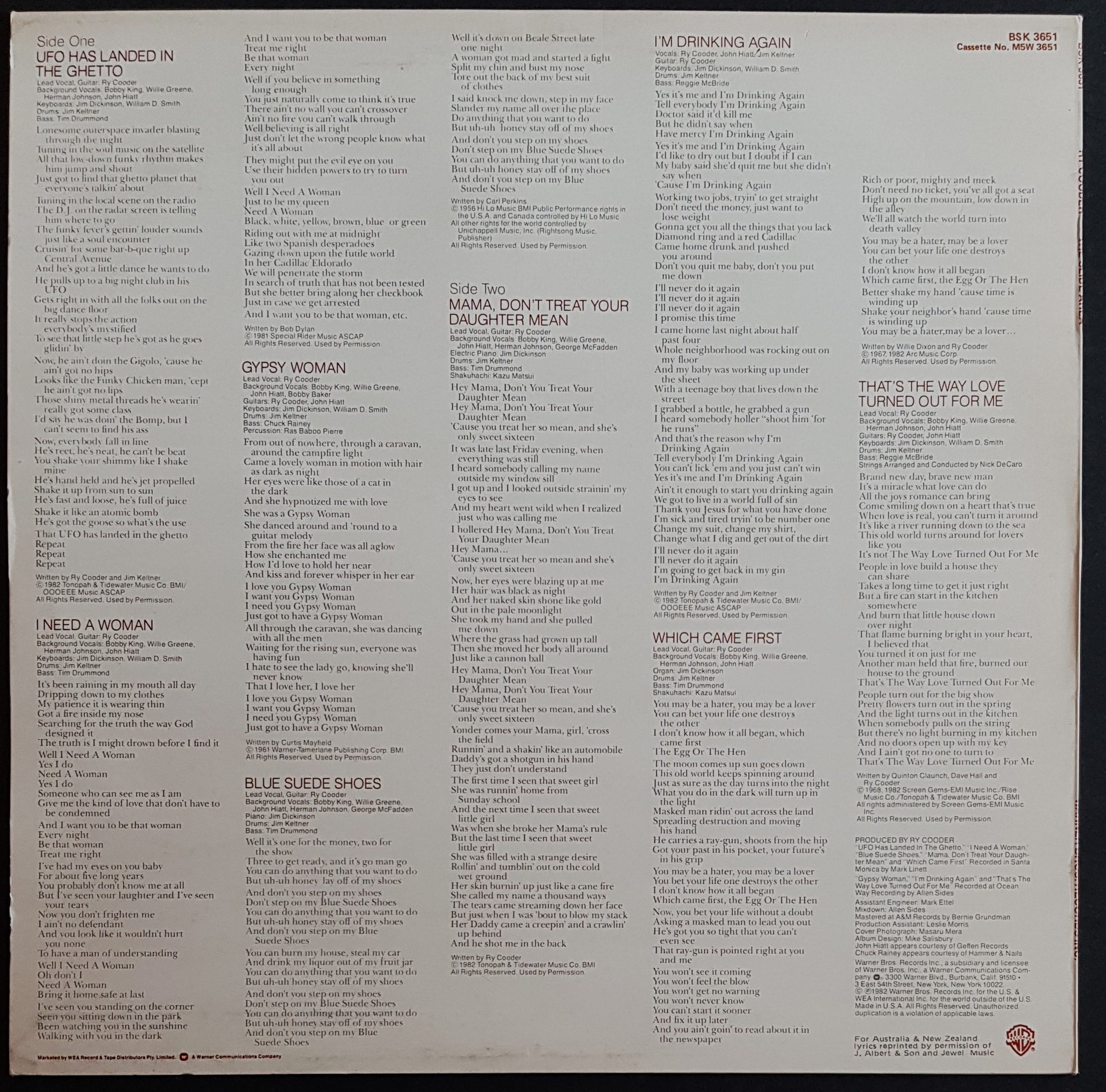 1982 Warner Bros. BSK 3651. Minor Ring Wear on Cover.