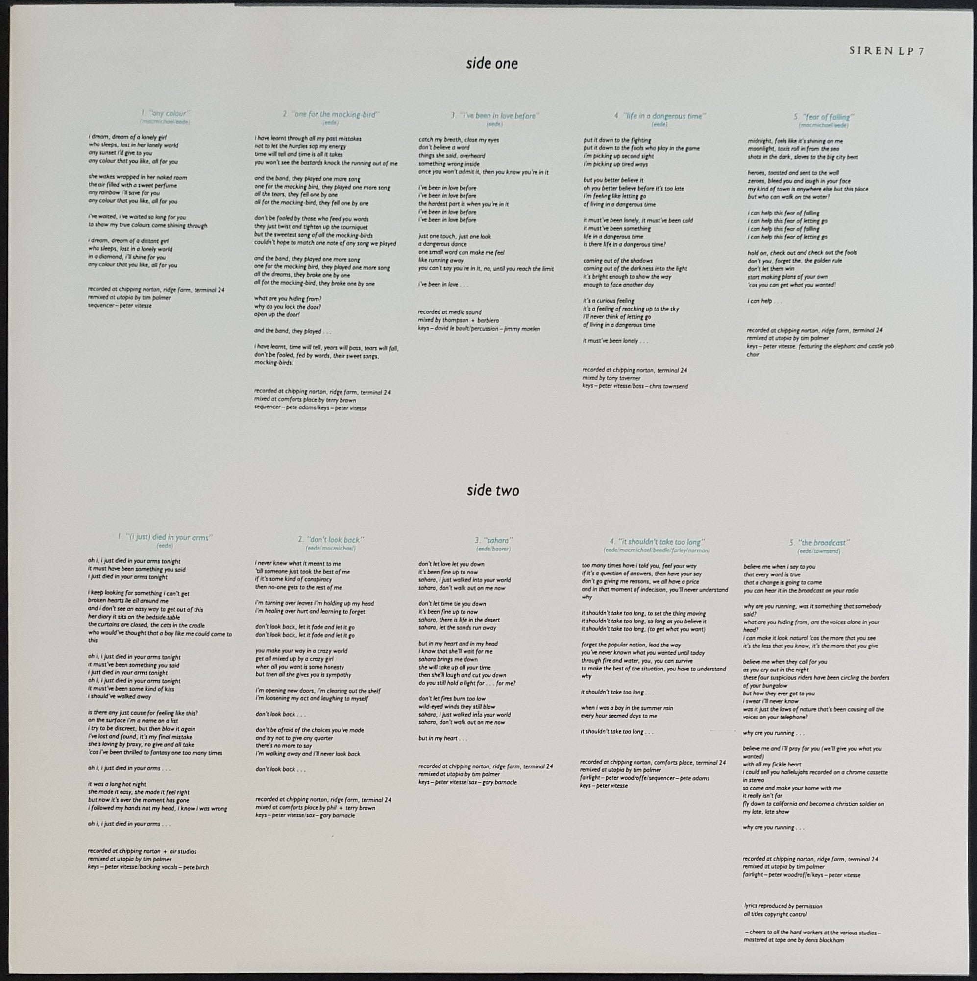 w.Inner Sleeve. 1986 Virgin SIREN LP7