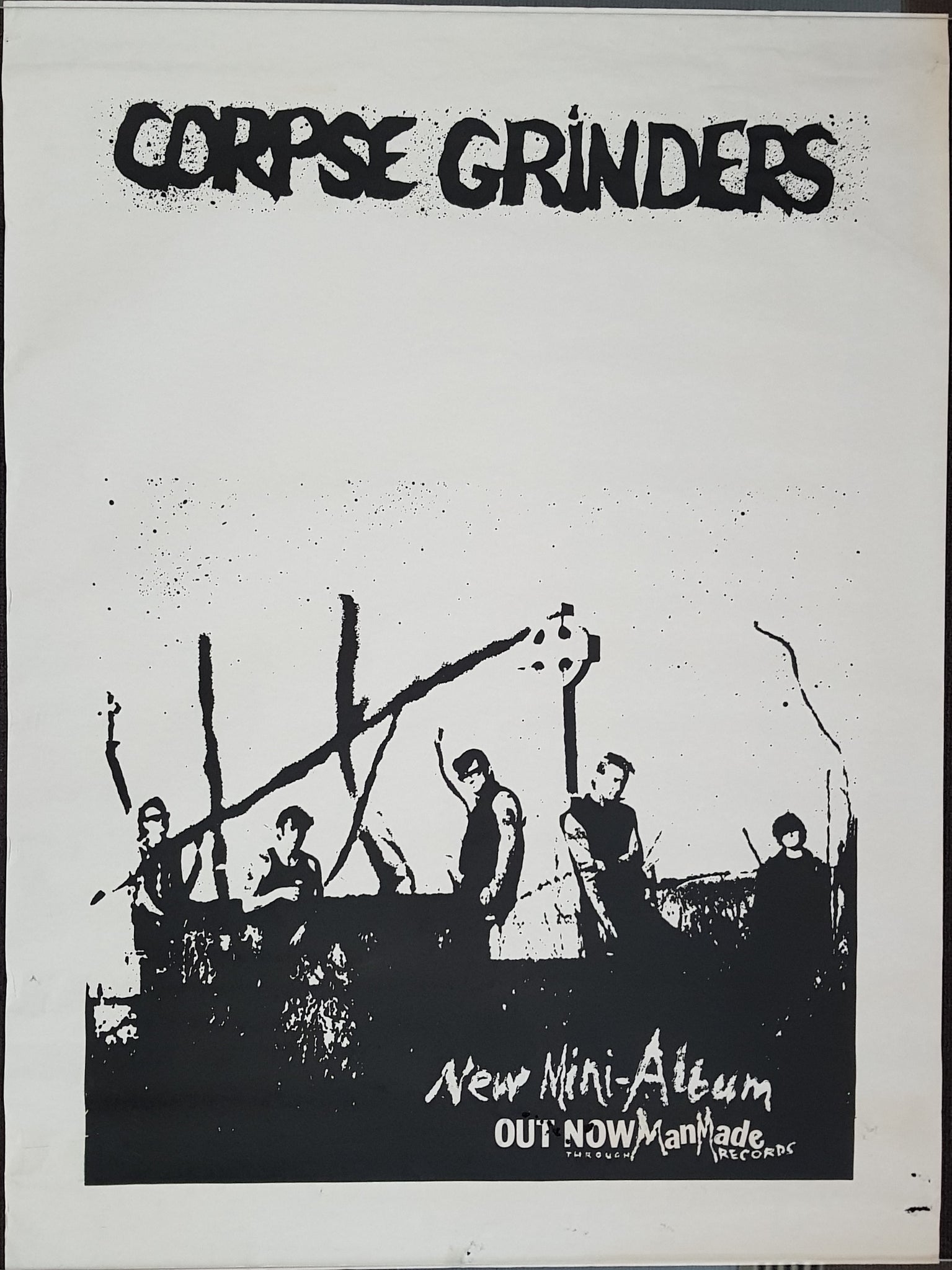 New Release Poster From Man Made Records, 1984. 76cm x 102cm. Silverfish damage and edge wear.