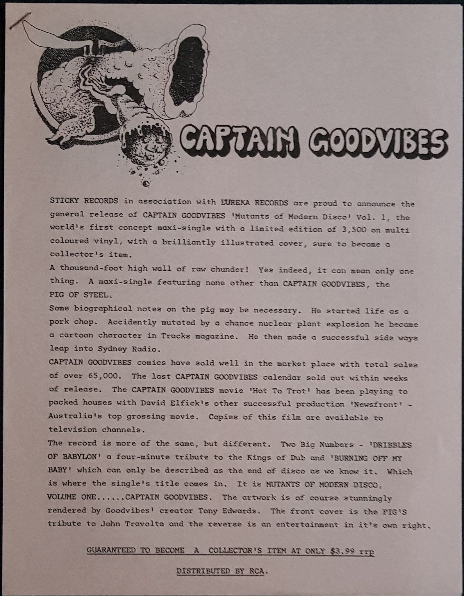 Mini LP Blue / Green Coloured Vinyl. 1978 Sticky Label SRL-001. Sold with 2p. Promo Bio