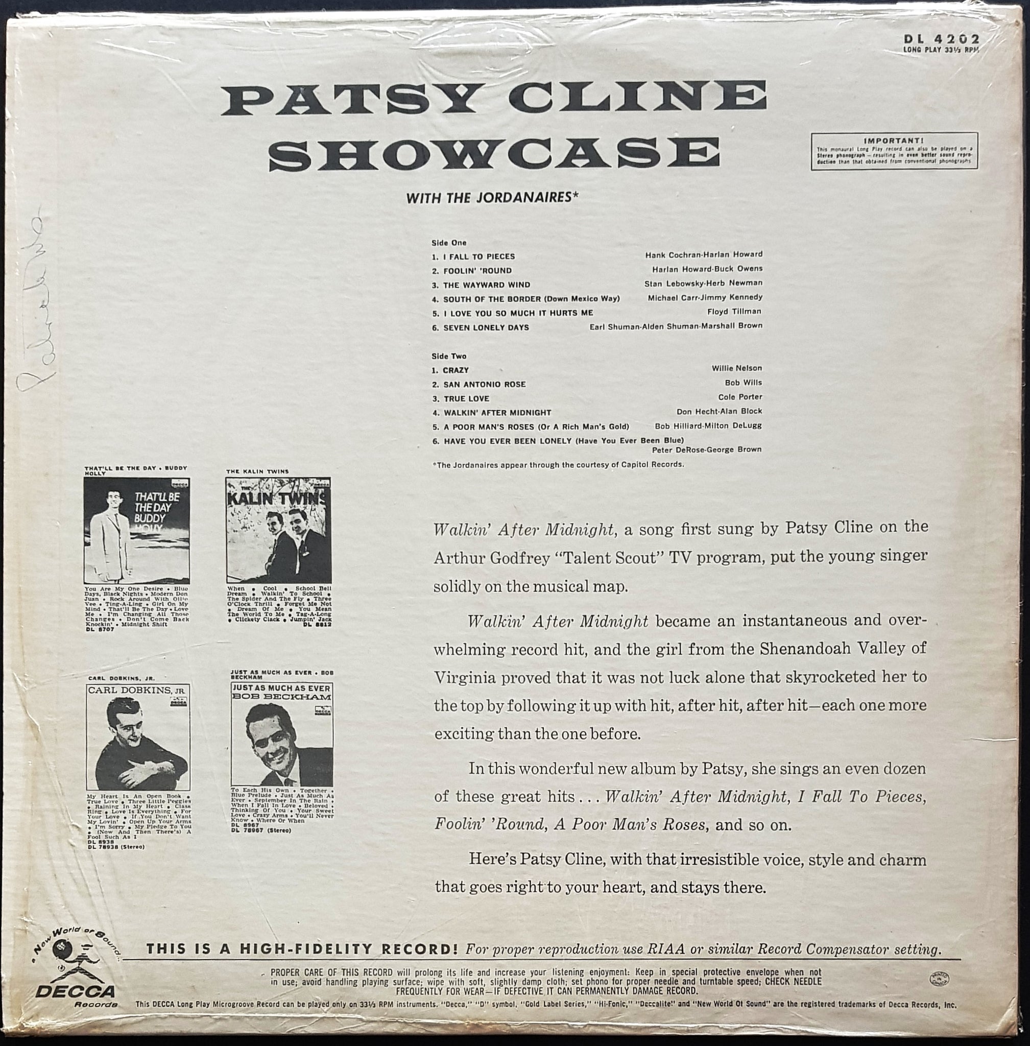1963 Black & Silver DECCA Label DL 4202. Cover Has Original Shrink Wrap. Small Writing on Back Cover & Label.