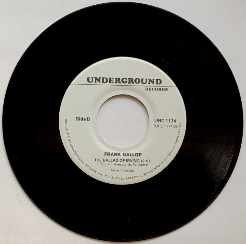 Performed w.Bob McPhadden. Flip Side is by Frank Gallop - 'The Ballad Of Irving'. UNDERGROUND Records URC 1174