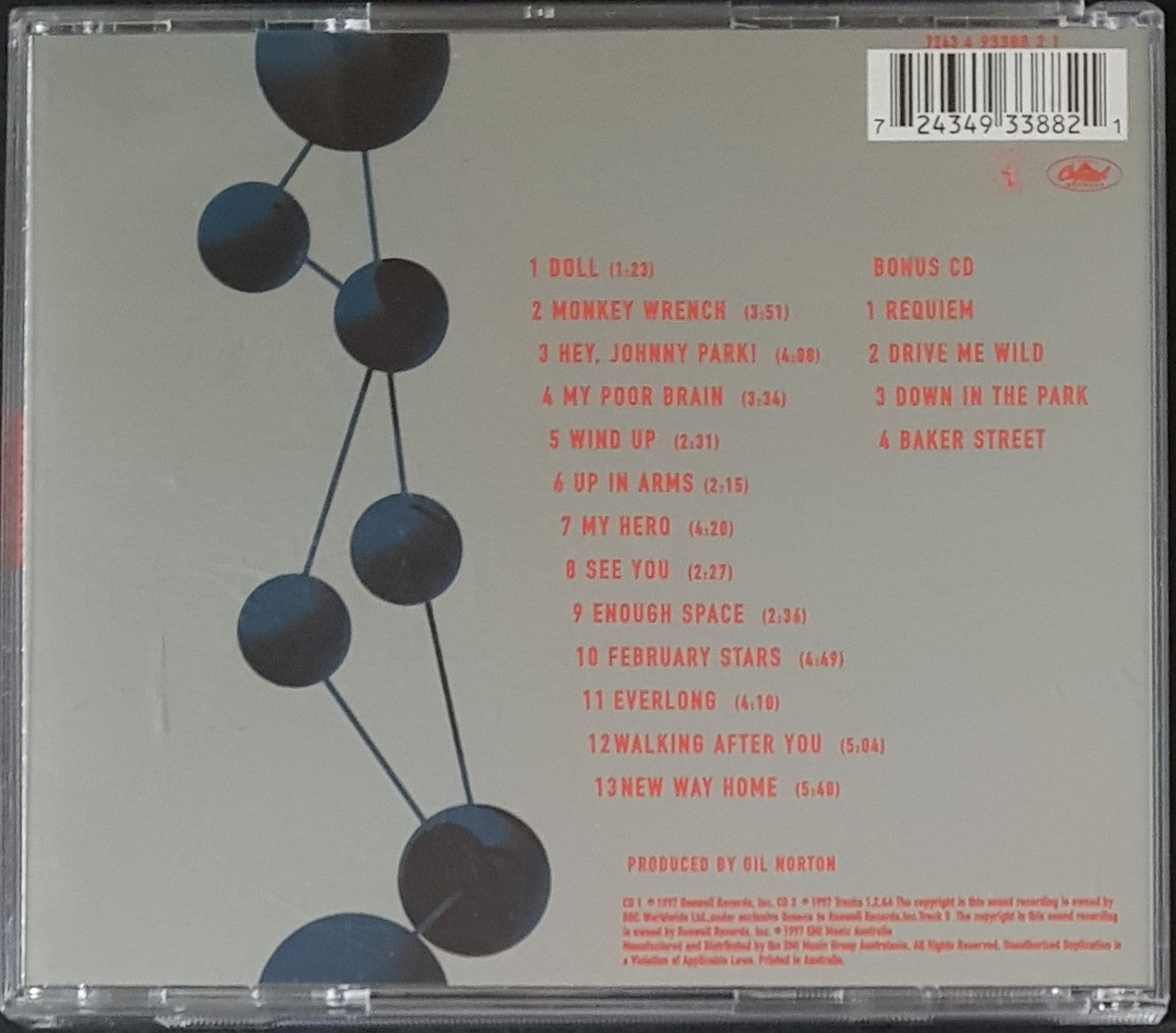 Australian Tour Pack. 1997 Capitol / Roswell Records 724349338821. Disc 2 is a 4 Track EP of Covers.