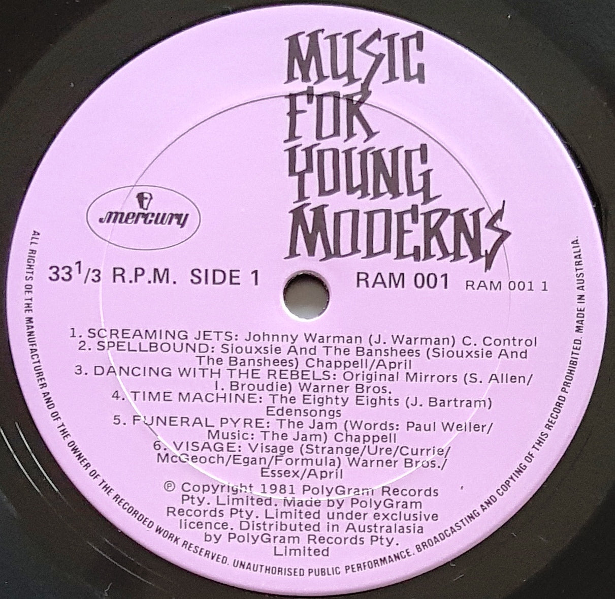 1981 Mercury RAM 001. Great New Wave compilation featuring Polecats, Reels, Johnny Warman, Siouxsie, Jam, Visage etc. Cover has small writing on front and minor wear
