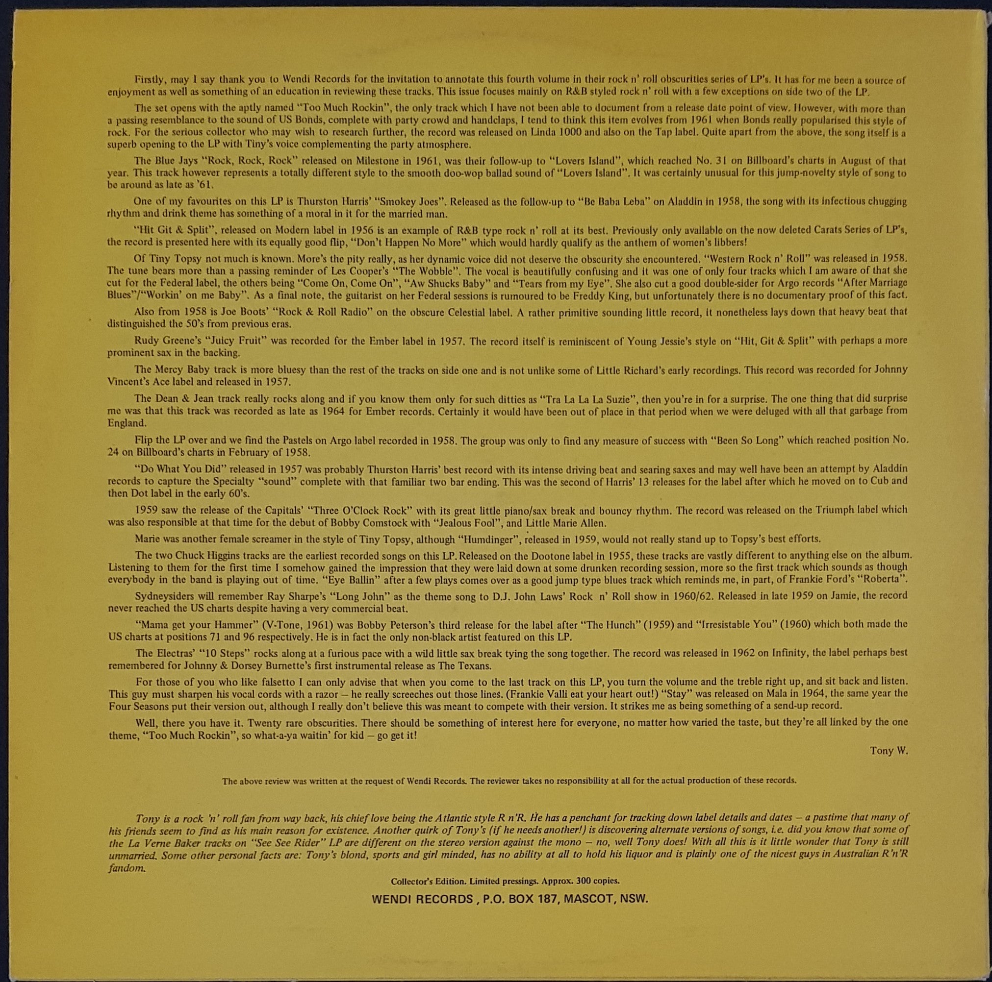Killer Compilation. WENDI 000004. Fetures Tiny Lewis, Blue Jays, Young Jessie, Dean & Jean, Pastels, Thurston Harris, Chuck Higgins +++++. Minor Wear & Scuffing on Cover + Small Sticker on Front