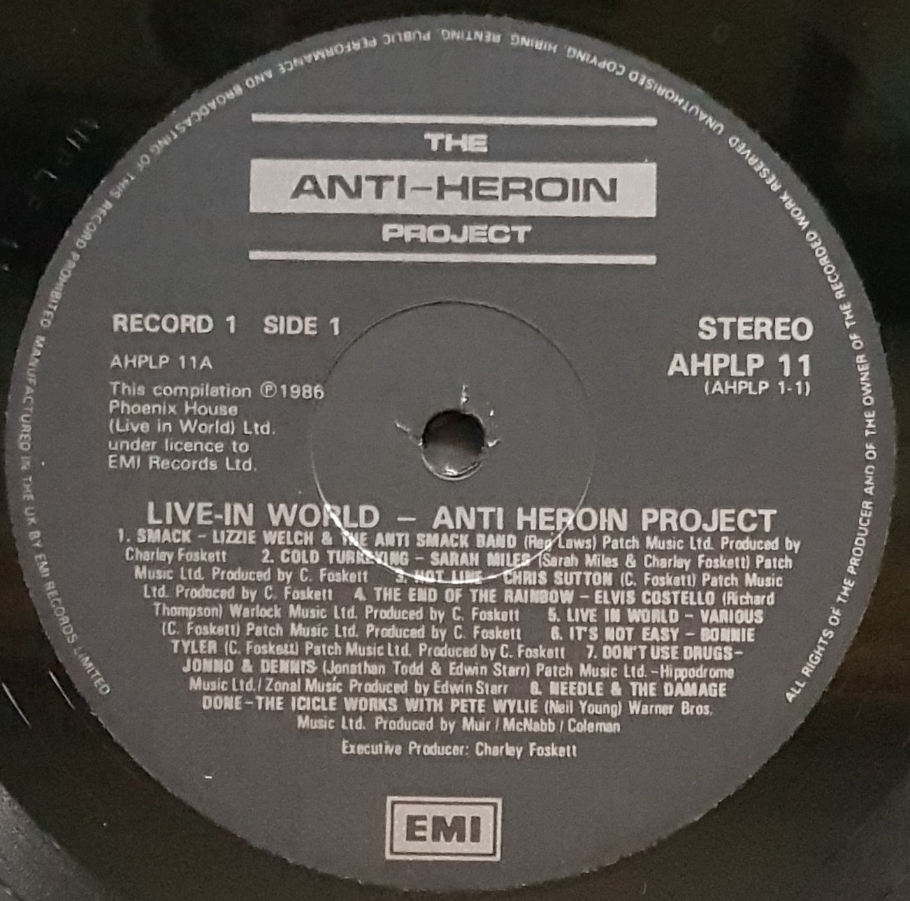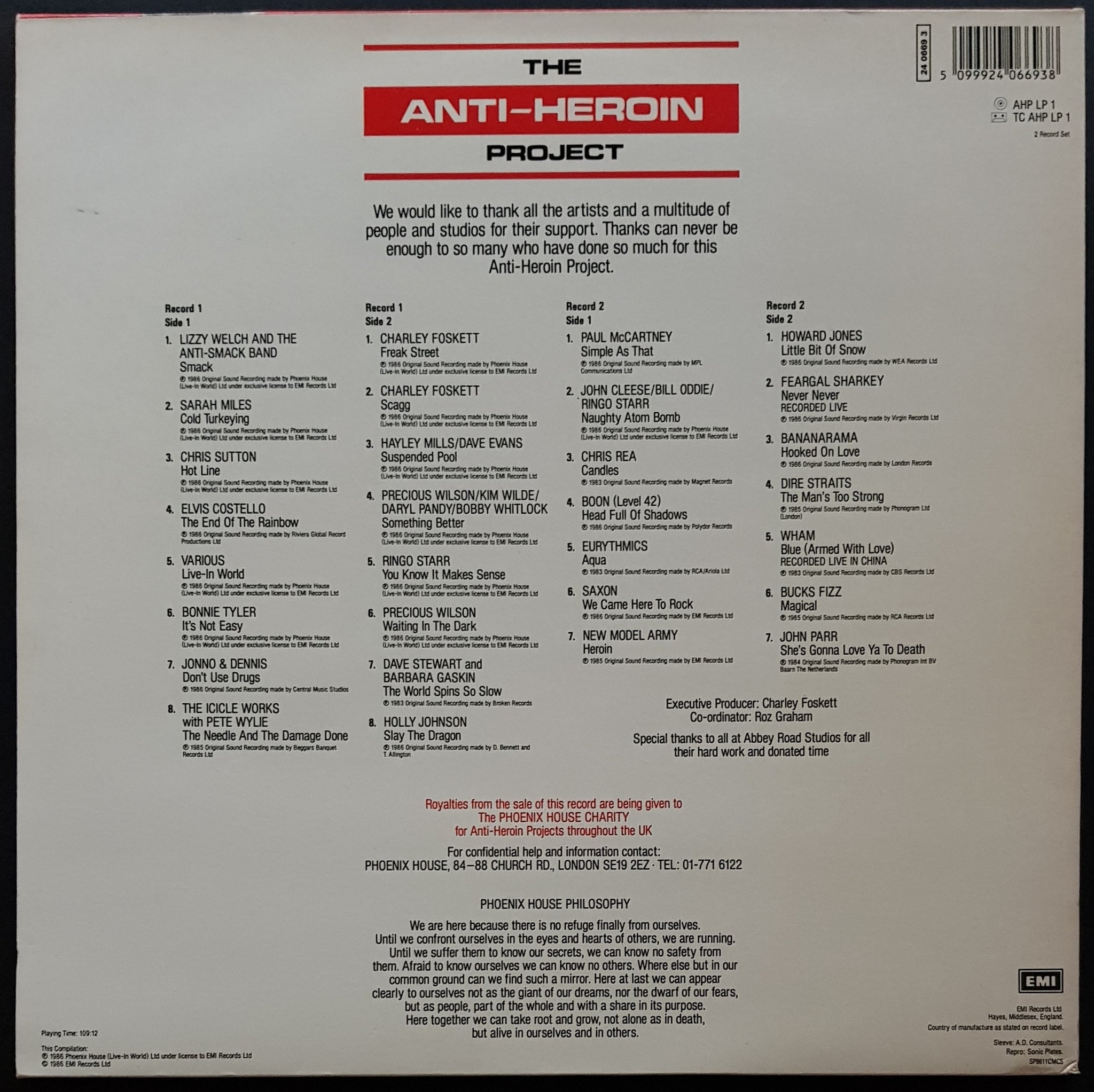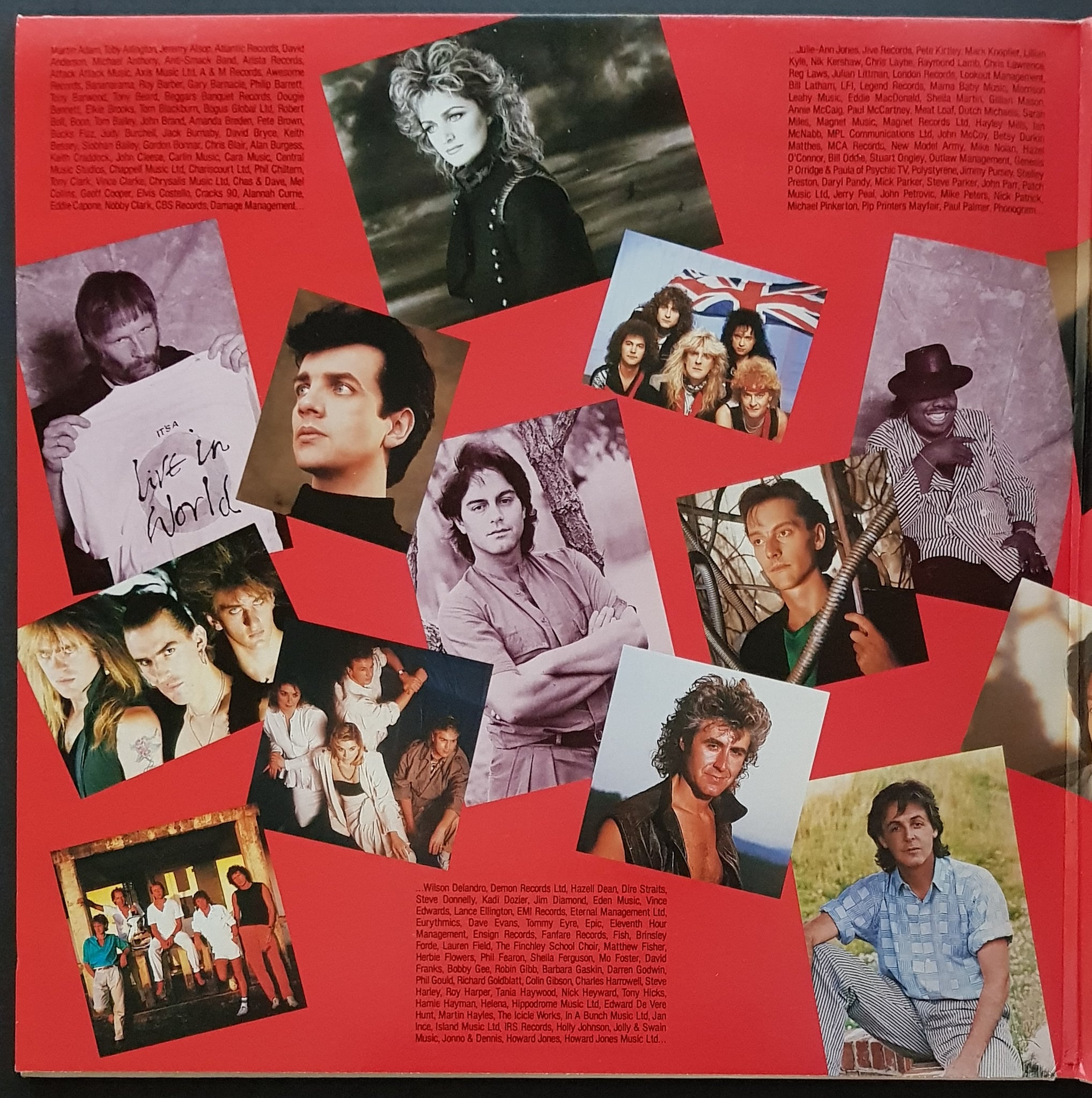 Gatefold Cover 1986 EMI AHP LP1. Features Specially Recorded Tracks by Elvis Costello, Paul McCartney, Ringo Starr, Dire Straits, Wham, New Model Army
