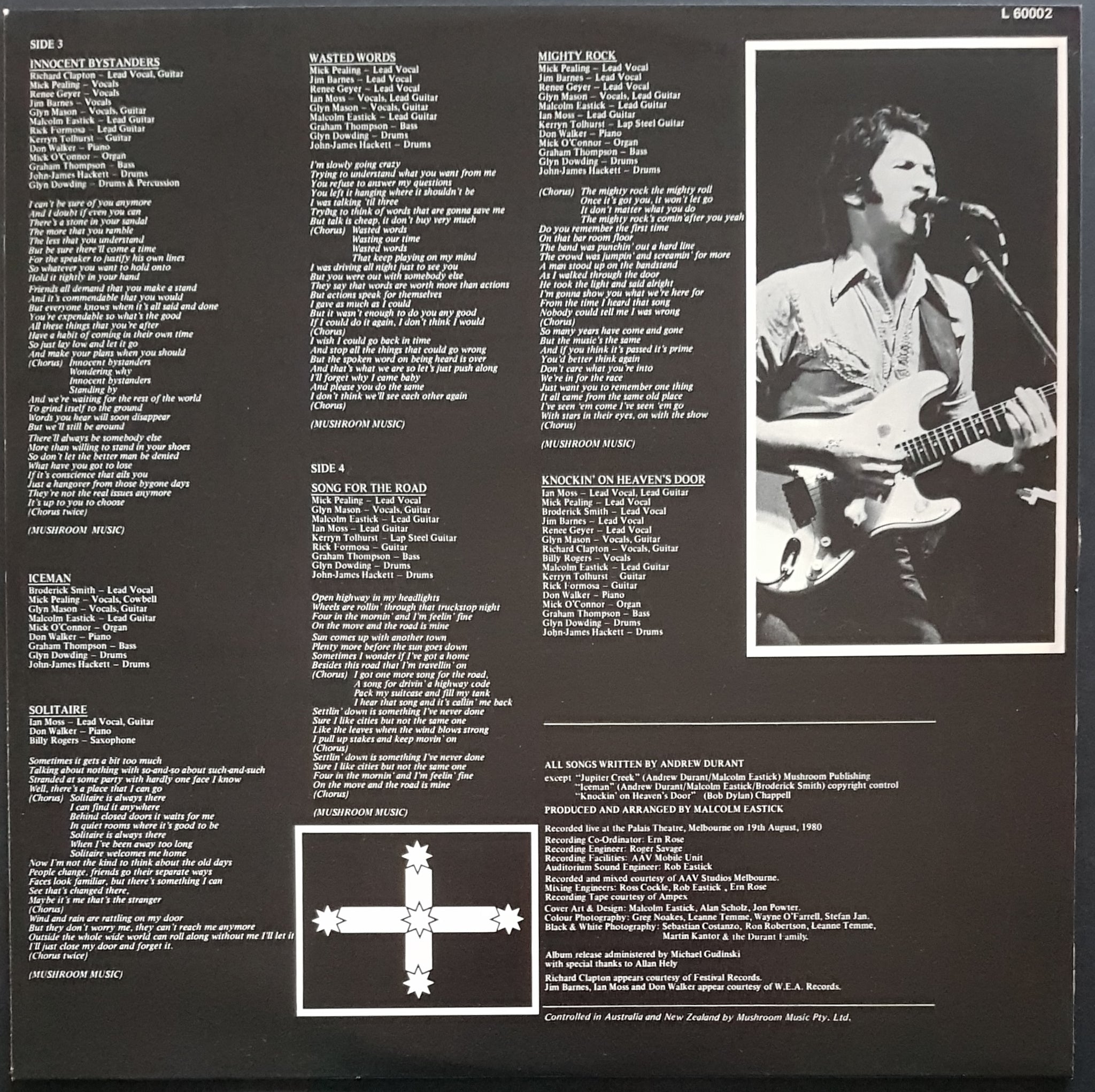 Gatefold Cover with Inner Sleeves. 1980 Mushroom L-60001/2. Features Barnes, Moss and Walker, Eastick, Clapton, Geyer & Other Classic Aussie Artists. Small bumps on cover at opening. One tiny surface mark, otherwise EX records.