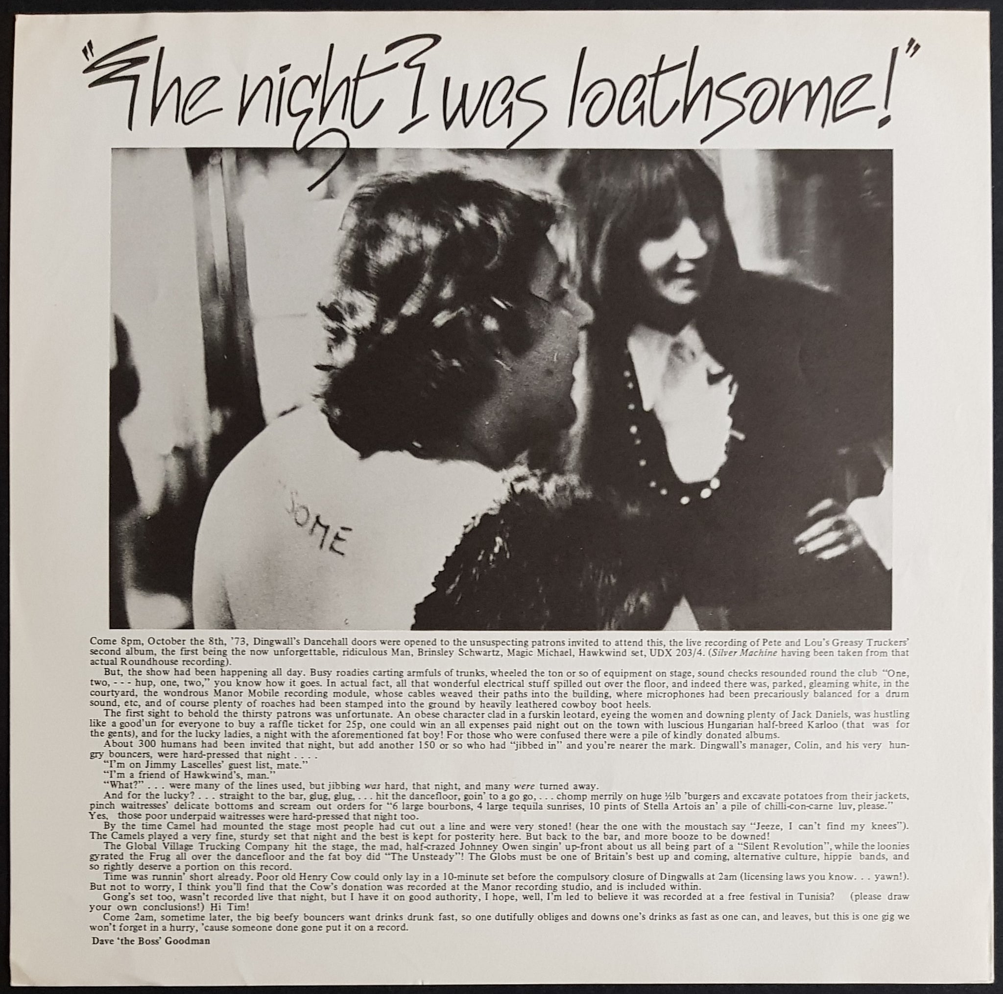 Gatefold Cover w.Insert. 1973 Greasy Truckers GT4997. Features Camel, Henry Cow & Gong on One Side Each. Minor wear and creases on cover which also has an 'Import Album' sticker on front.
