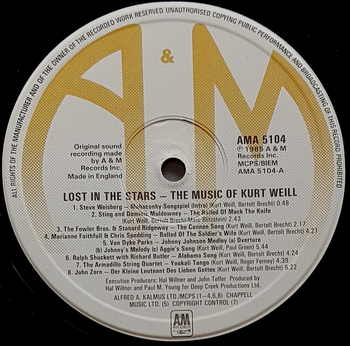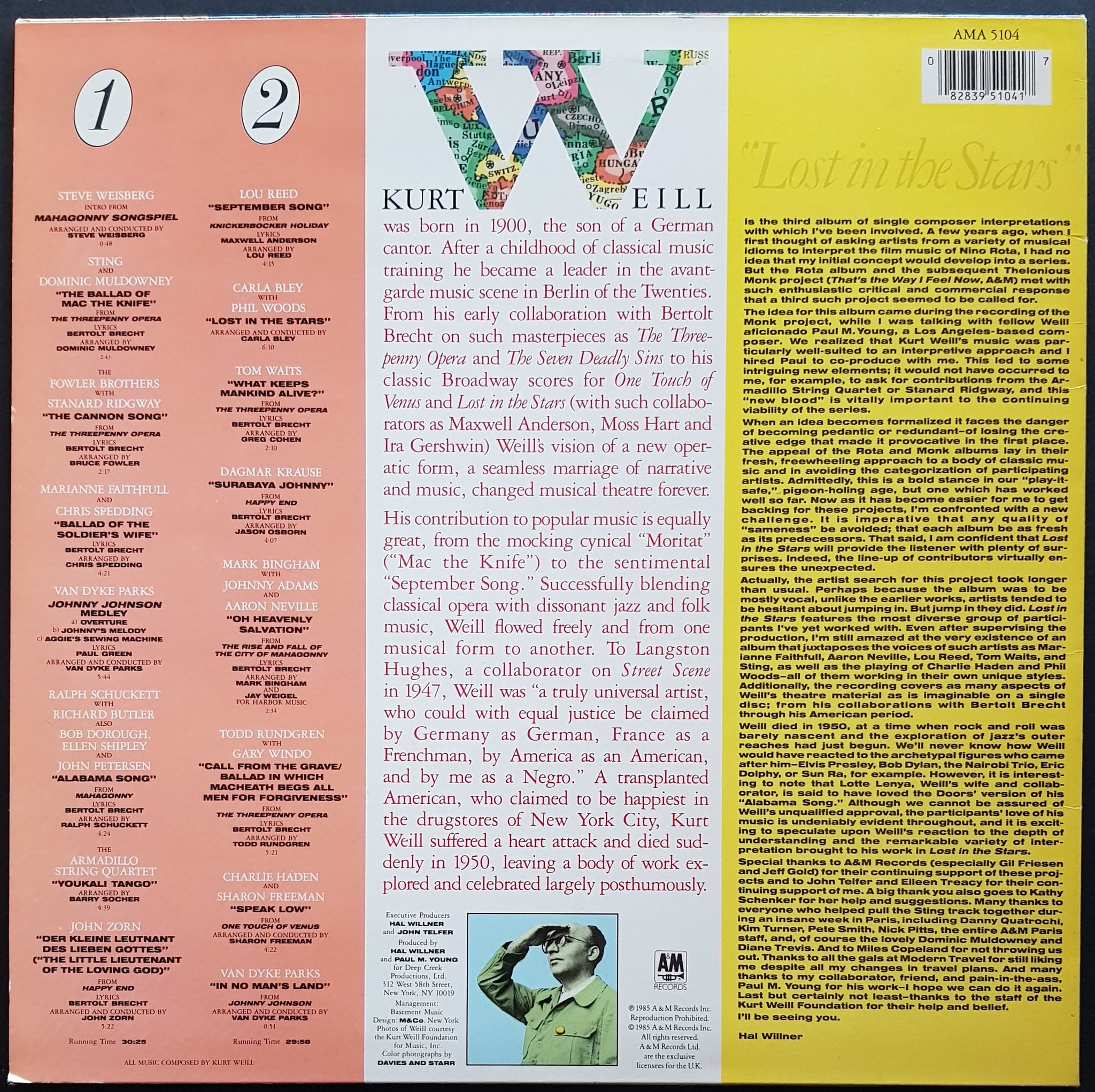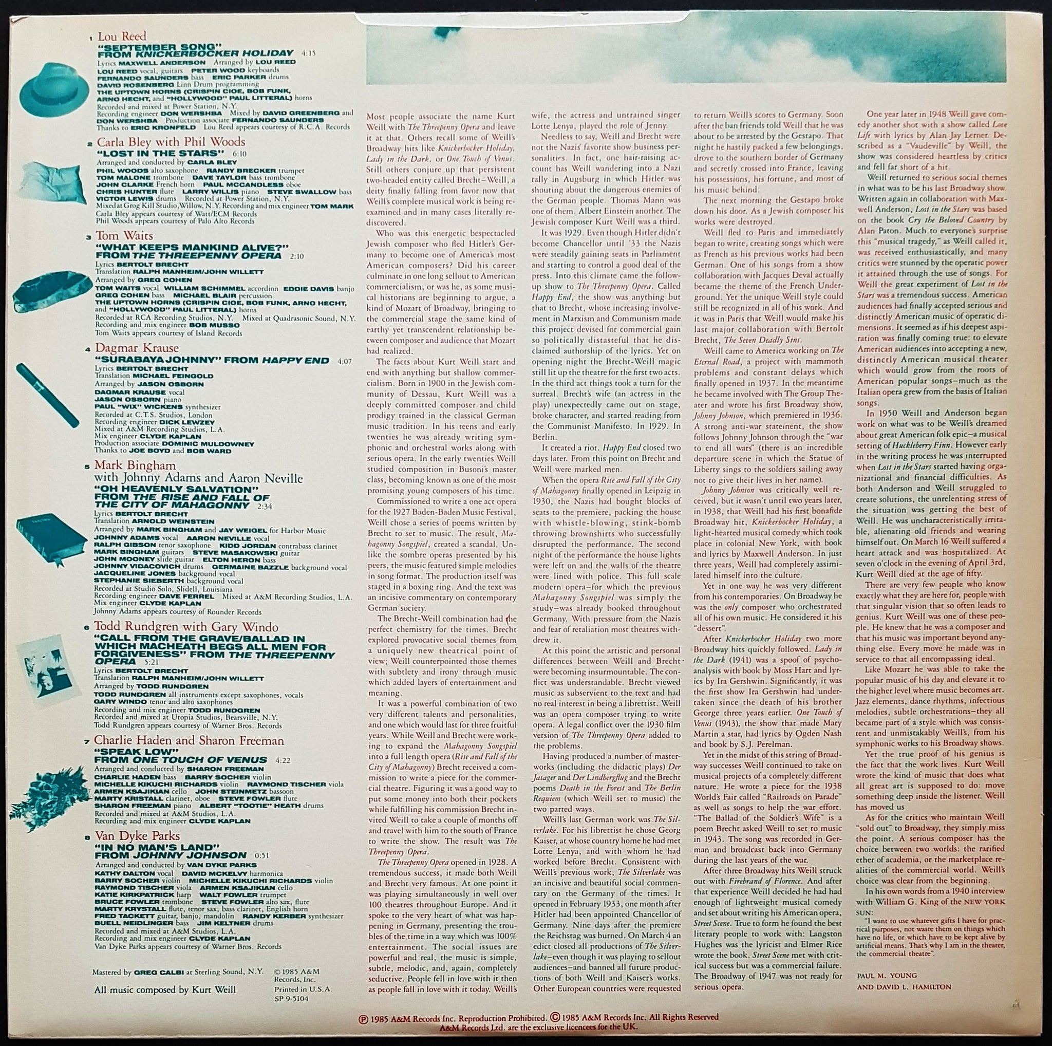 w.Inner. 1985 A&M AMA 5104. Features Lou Reed, Tom Waits & Sting