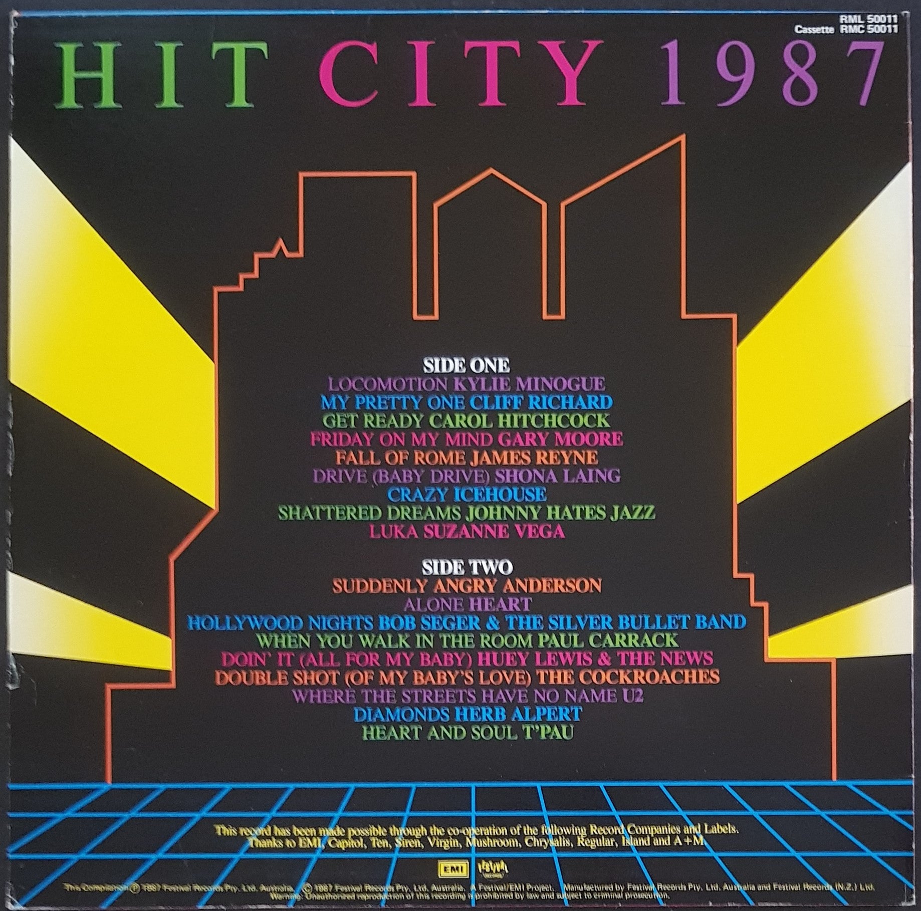 w.Insert. Compilation. 1987 Festival / EMI RML50011. Kylie Minogue, Gary Moore, James Reyne, Icehouse, U2, Angry Anderson. Minor Wear on Cover.