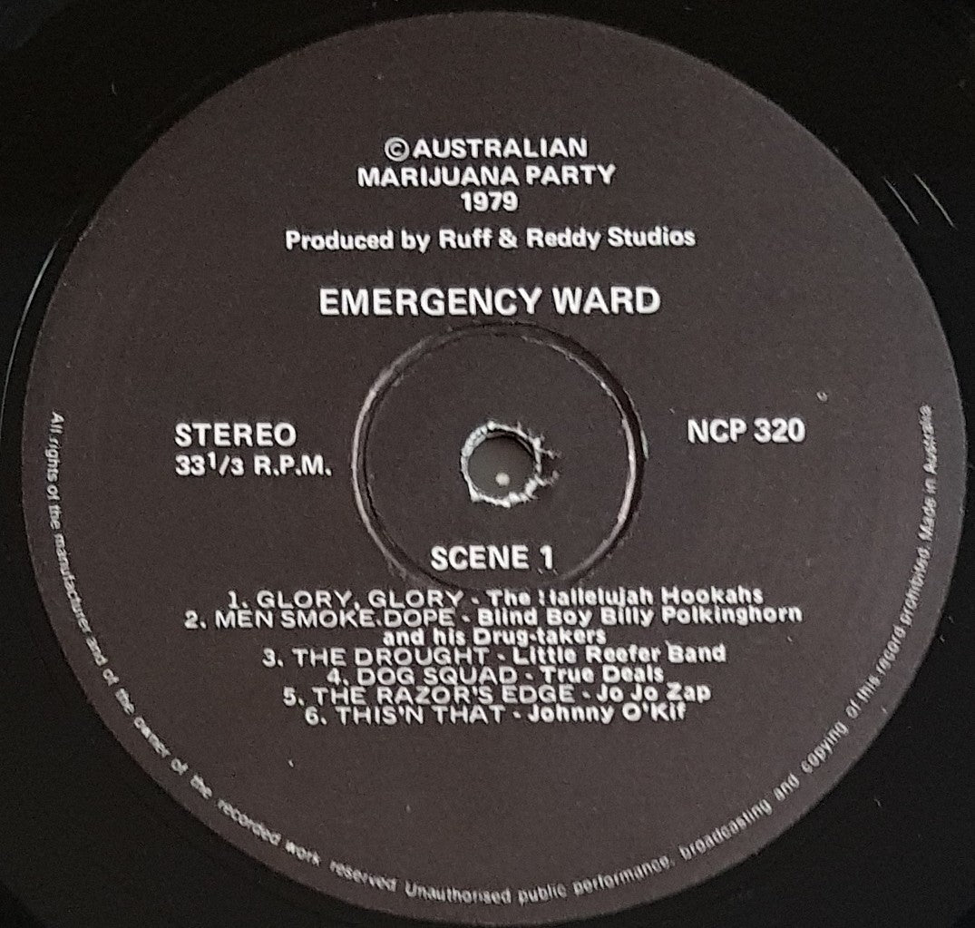 with Inside Out Gatefold Cover. 1979 Australian Marijuana Party NCP320. Compilation Issued for the Benefit of The Marijuana Party.