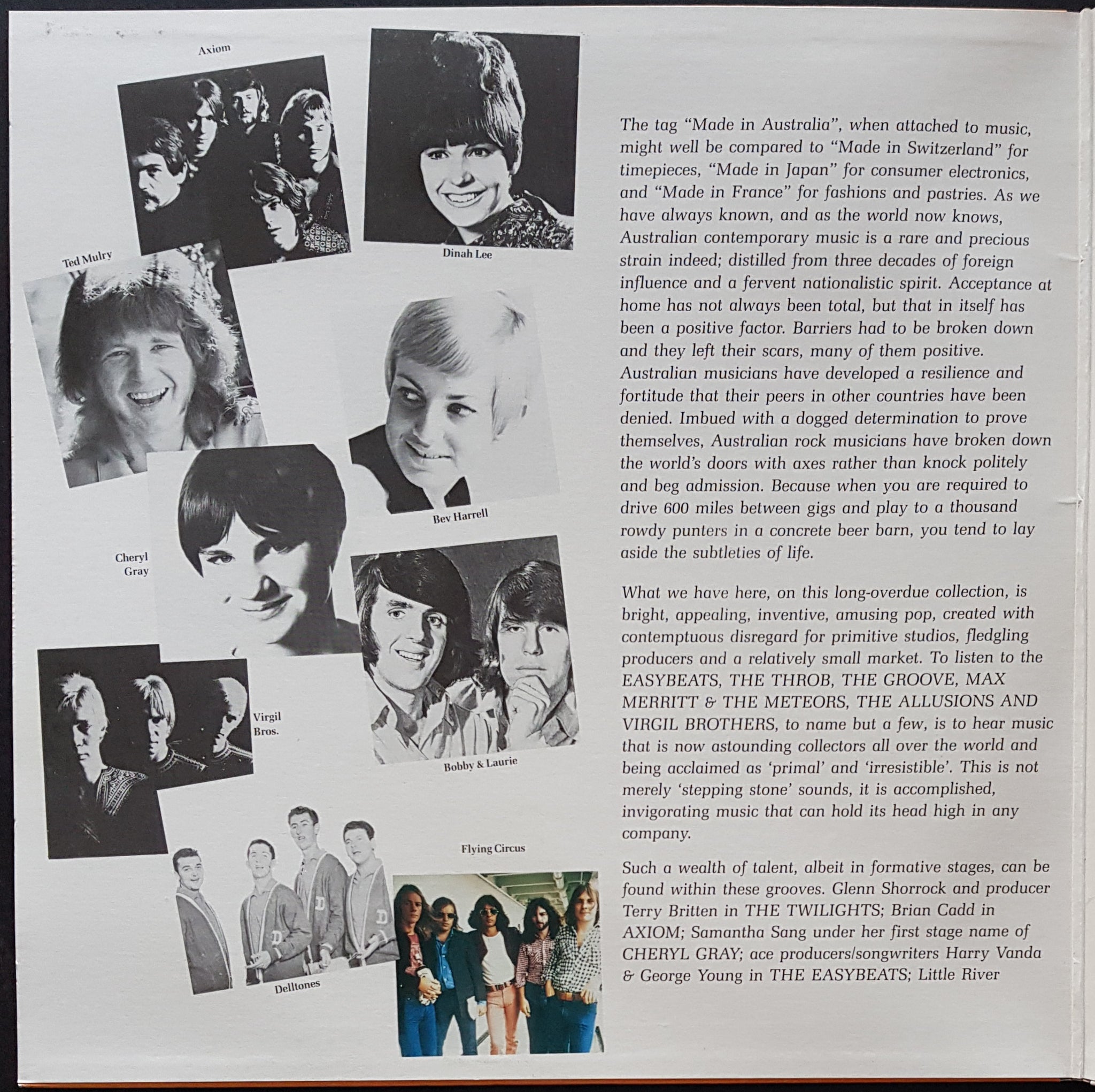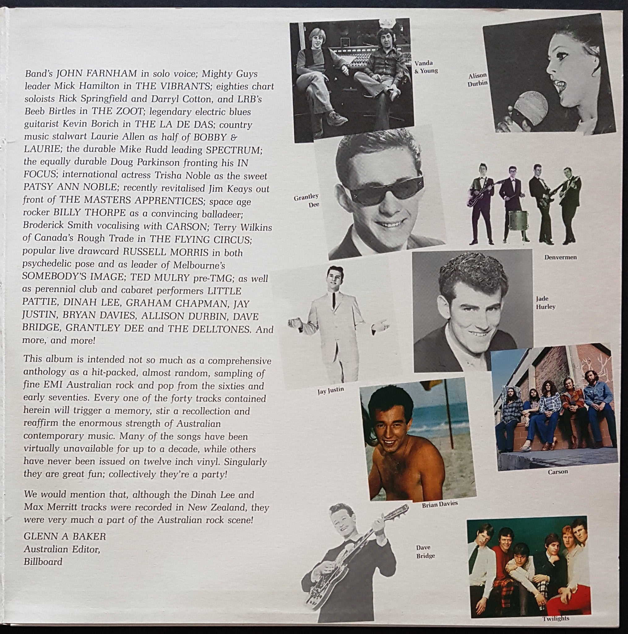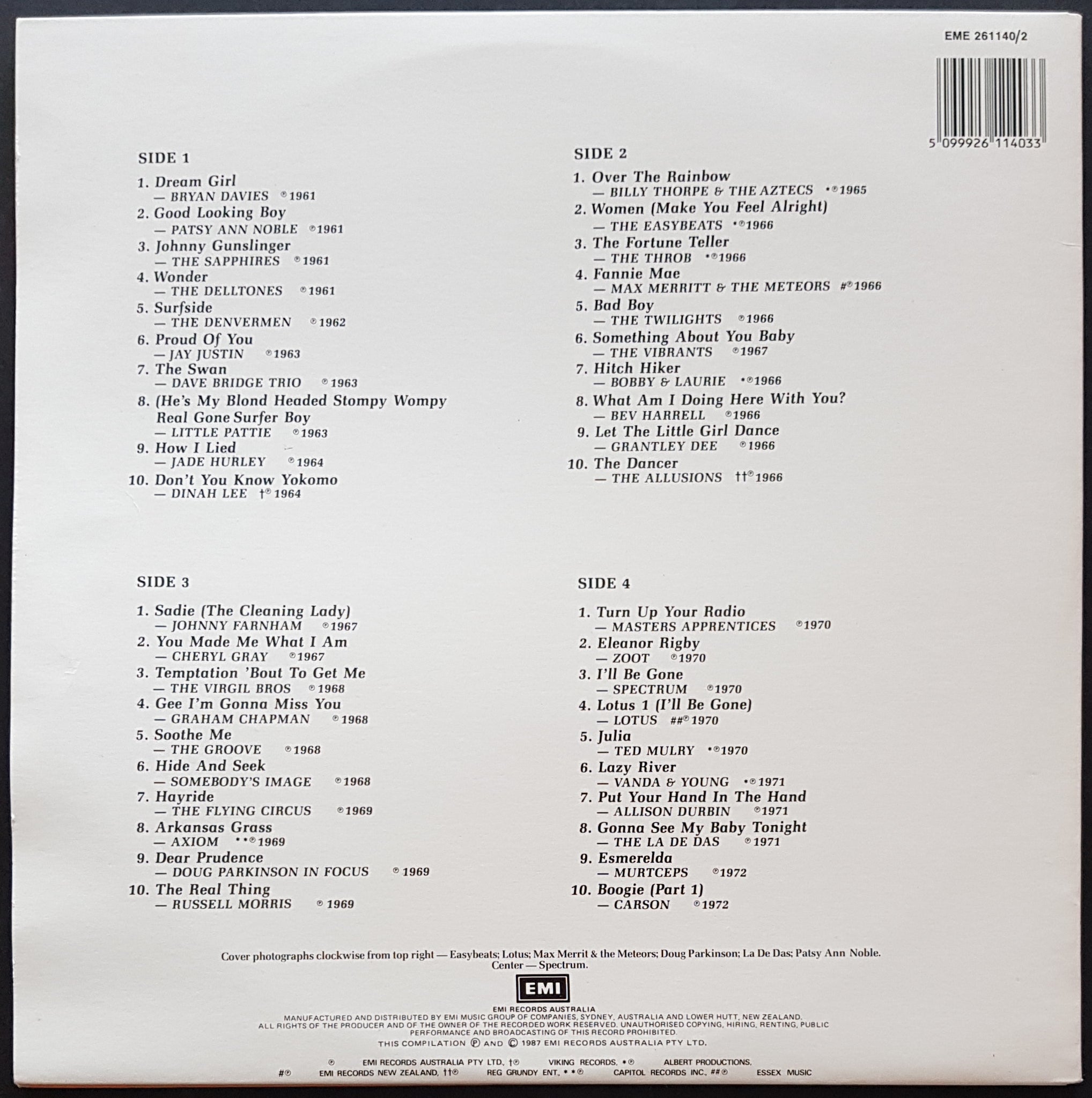 40 Track Quintessential Compilation Of Australian Music Dating From 1961 - 1972. 1987 EMI EME 261140/2. Minor Handling Creases on Cover and along spine.
