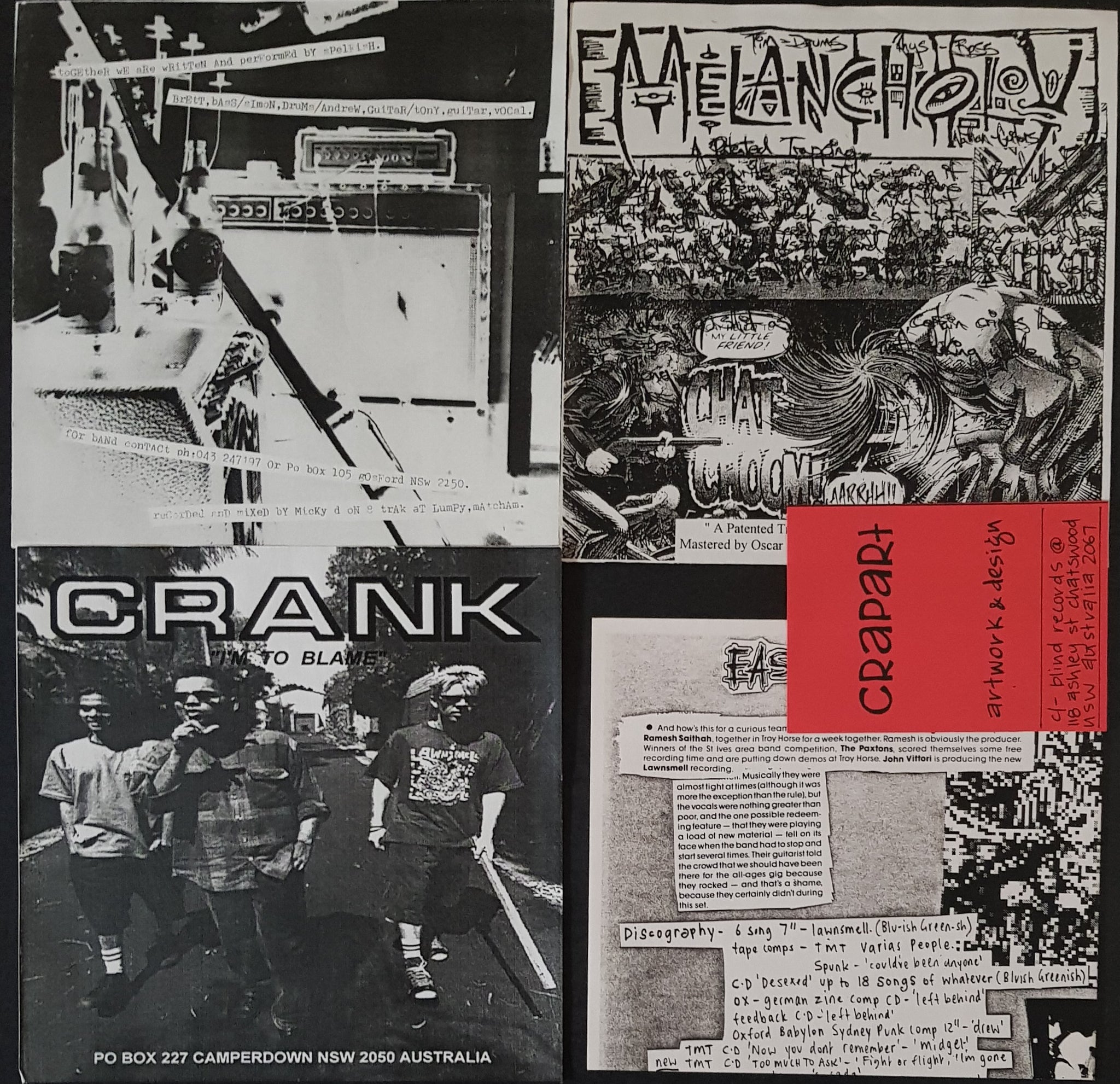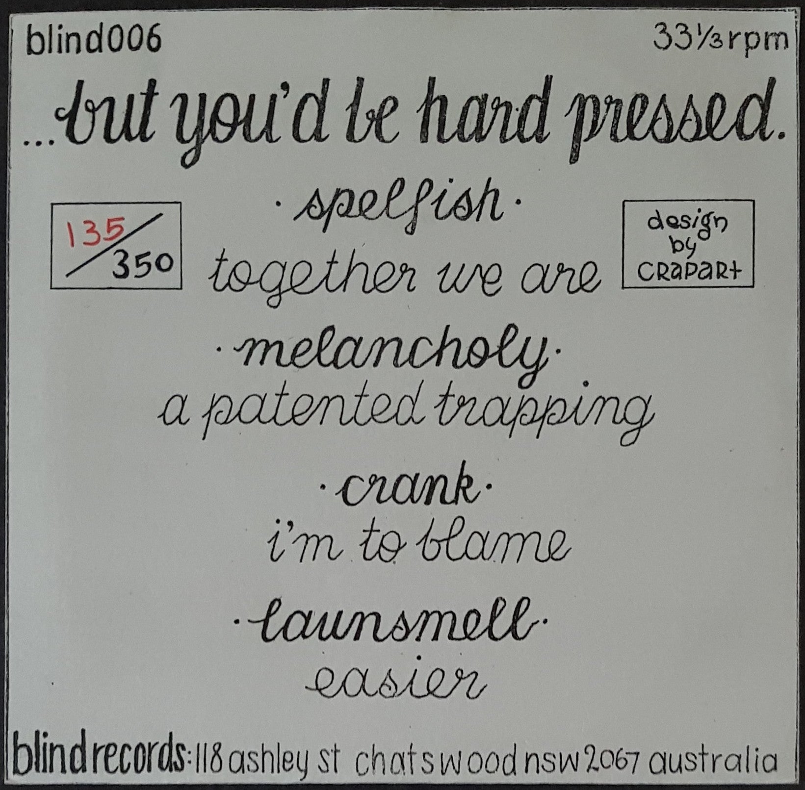 EP PS w. Inserts #135/350. 1995 Blind Records BLIND006. Features tracks by Lawnsmell, Crank, Melancholy & Spelfish