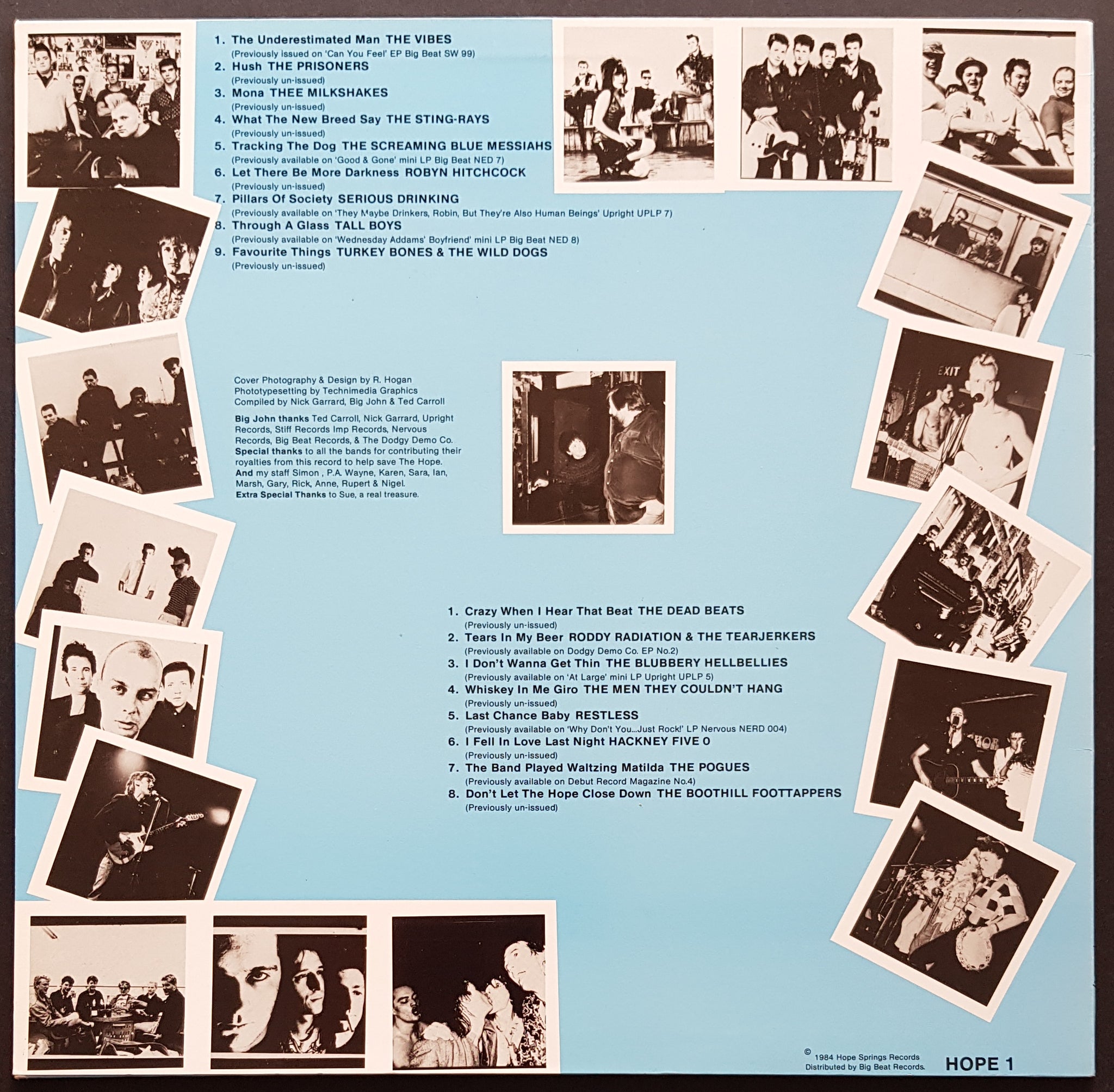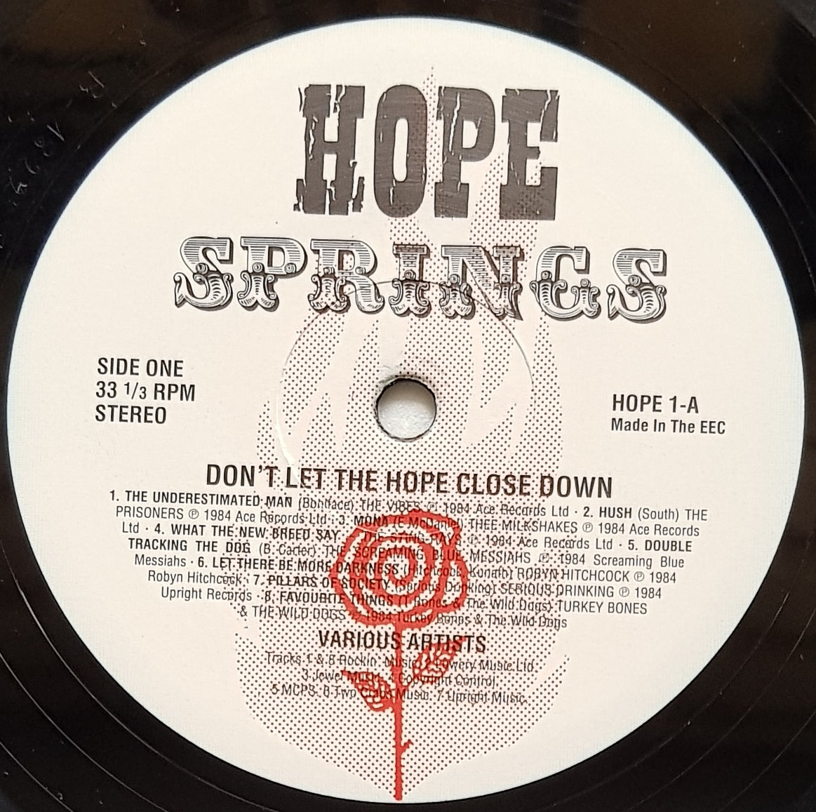 1984 HOPE SPRINGS Records HOPE1. Features The Pogues, Vibes, Thee Milkshakes, Prisoners, Robyn Hitchcock, Screaming Blue Messiahs + Others