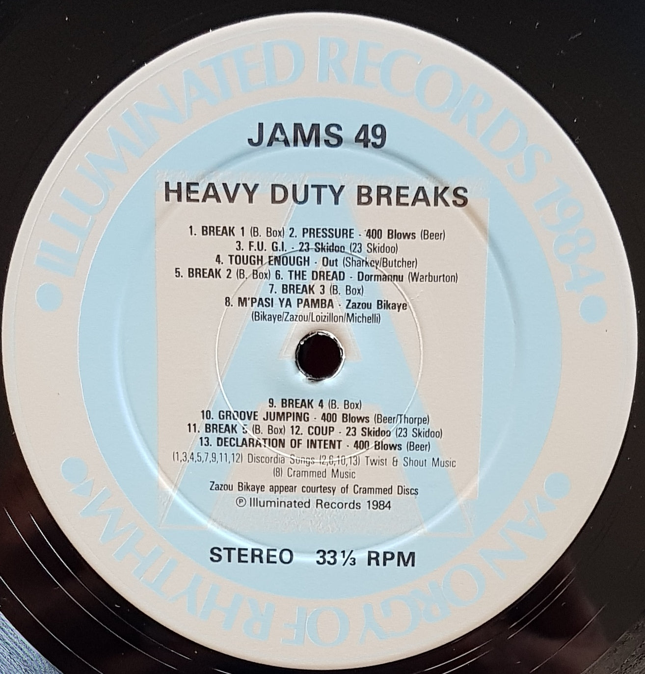 1984 ILLUMINATED Records JAMS 49. One Label Pressed Off-Centre, Does Not Effect Play