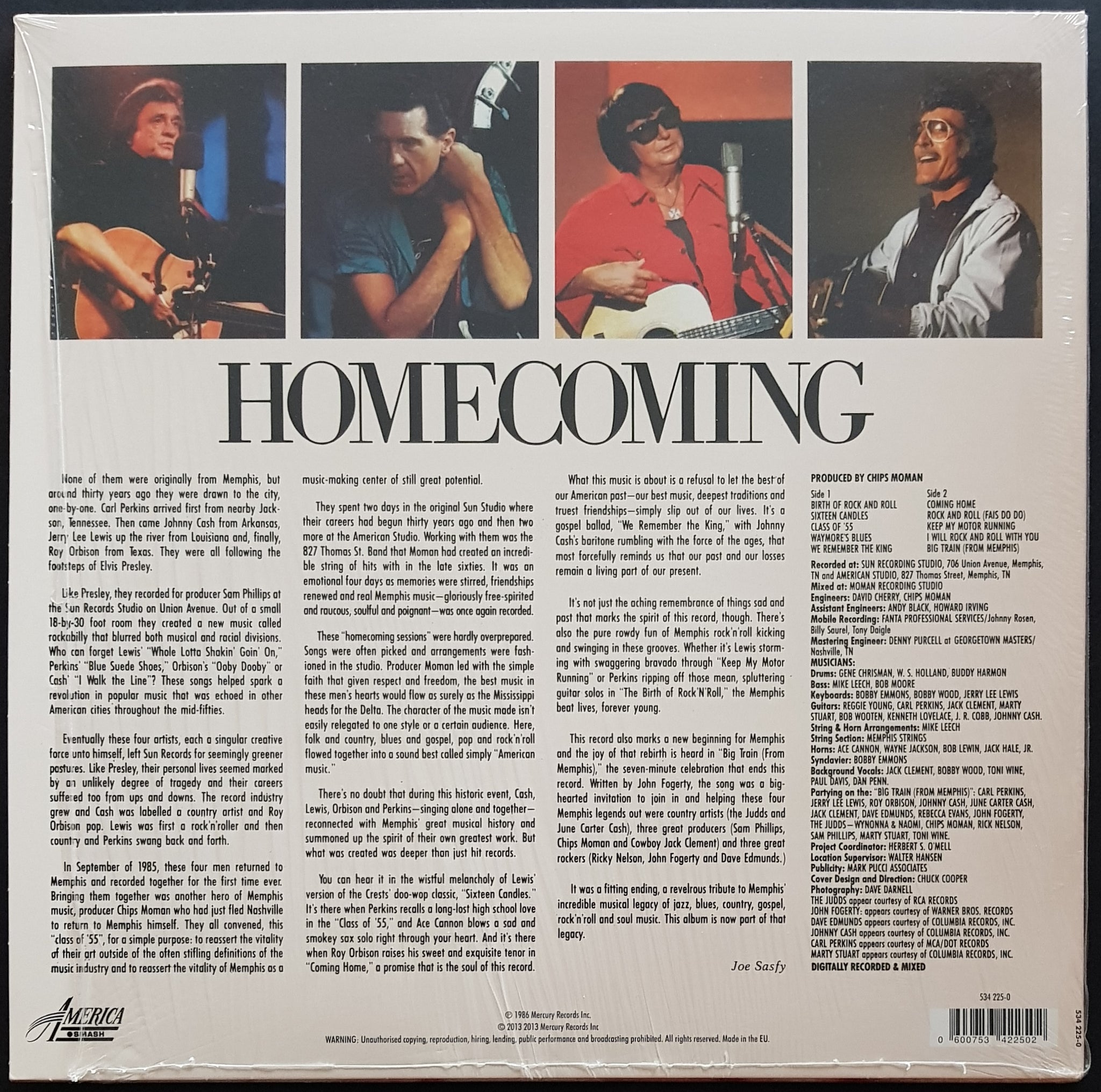 Featuring Carl Perkins, Jerry Lee Lewis, Roy Orbison & Johnny Cash. 2013 Mercury 534 225-0 Back To Black 180 gram Remaster. Cover has original shrink wrap with hype sticker. Minor scuffs on record.