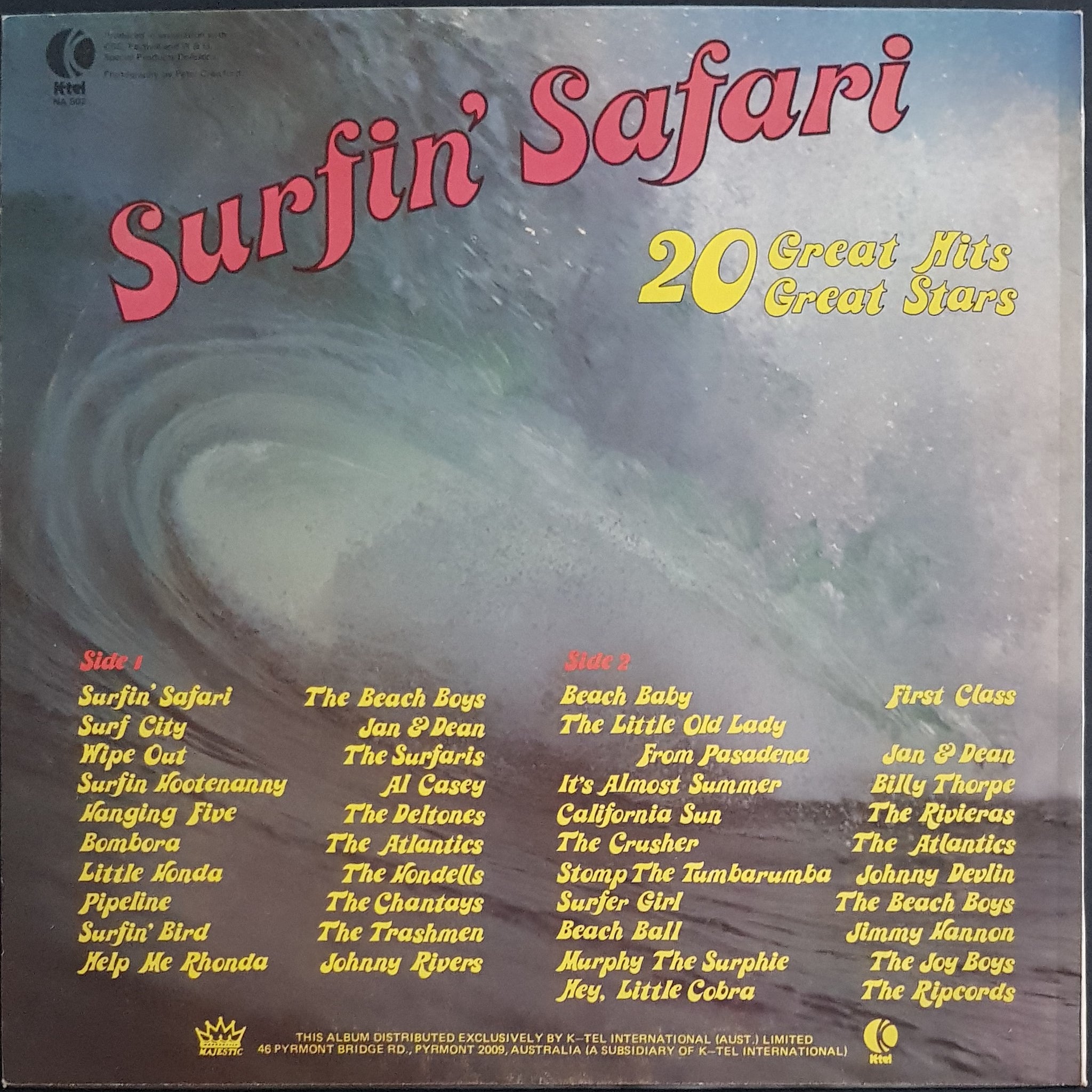1976 K-TEL NA 502. Scuffs and creases on cover. Writing on label. Features The Atlantics, Billy Thorpe, Johnny Devlin, Jimmy Hannan, Joy Boys, Deltones + U.S artists