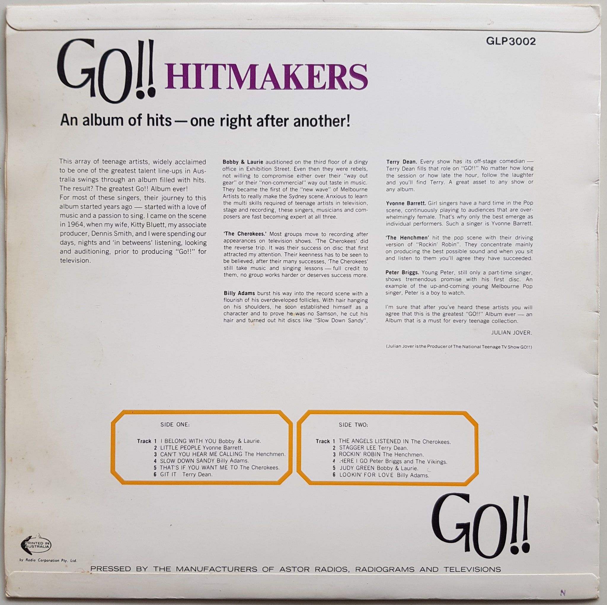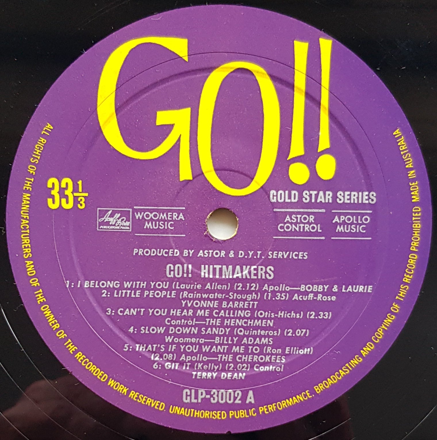 Compilation. 1966 Go!! GLP-3002. All the Classics. Bobby & Laurie, Yvonne Barrett, The Henchmen, Billy Adams, The Cherokees & Others. Very Clean Copy. Cover has foxing and fine creases along spine.