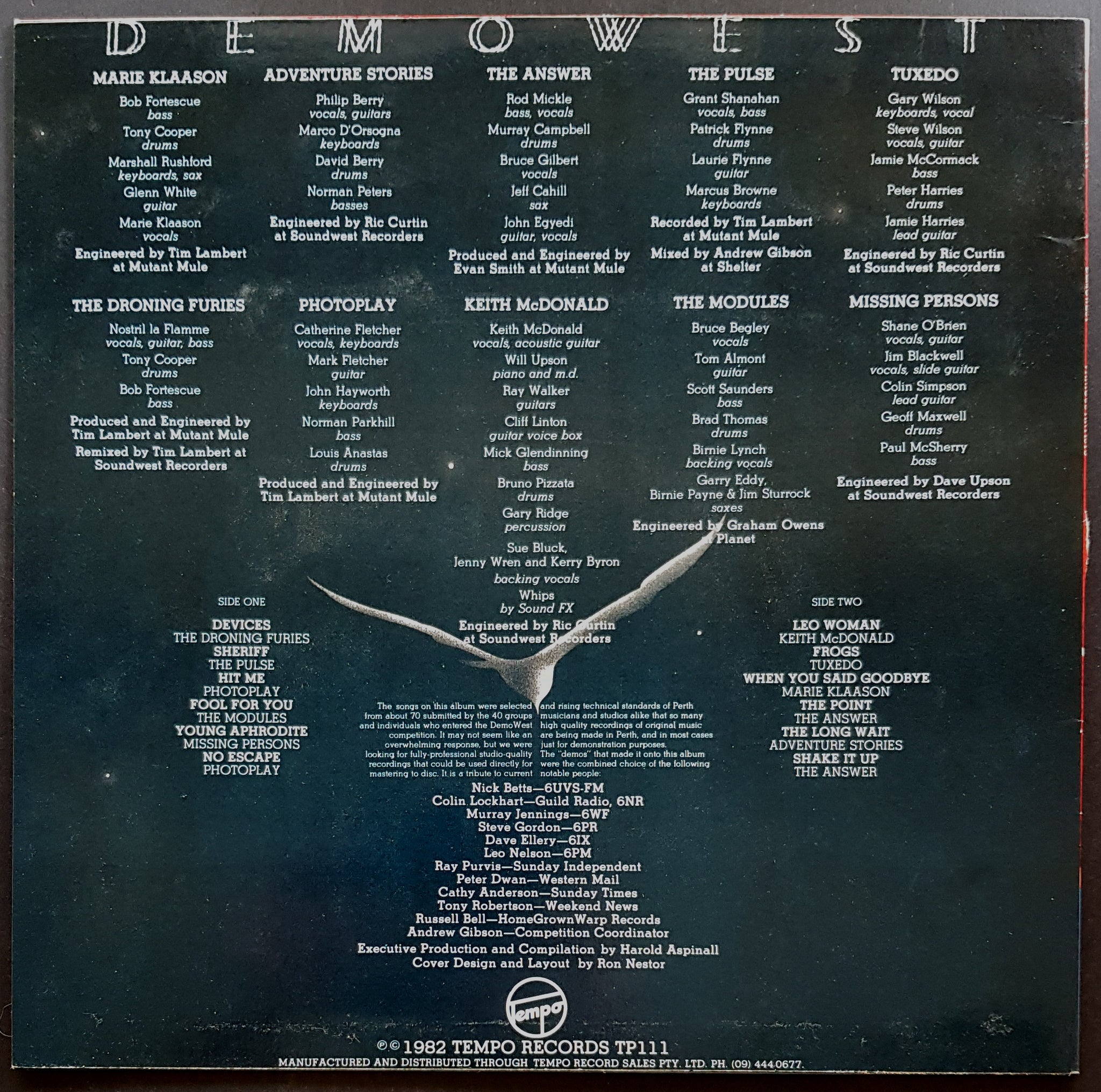Compilation. 1982 Tempo Records TP111. Features tracks by Missing Persons, The Modules, Photoplay, Tuxedo, The Answer & Others