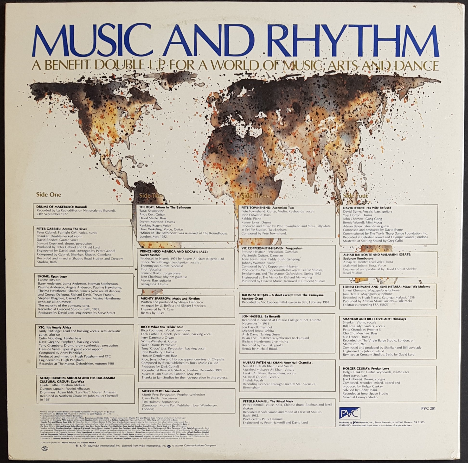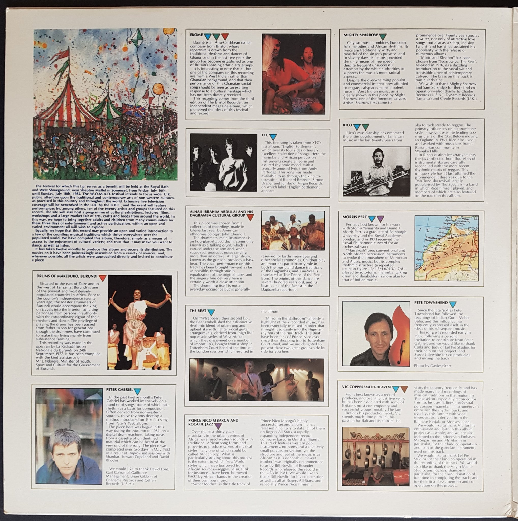 Set. "A benefit double LP for a world of music, arts and dance. The WOMAD Festival. 1982 PVC Records PVC 201.Cover Has Minor Wear And Corner Crease. Peter Gabriel, David Byrne, the BEat, XTC, Pete Townshend