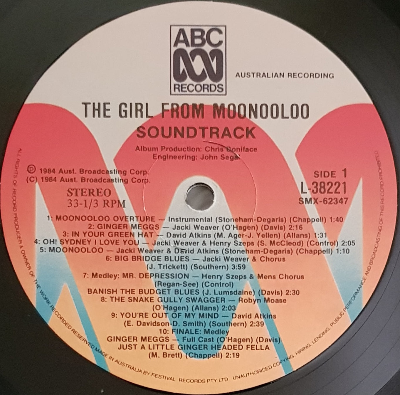 1984 ABC Records L-38221. Most Tracks Performed By Jacki Weaver. Minor Wear and Creasing on Cover.