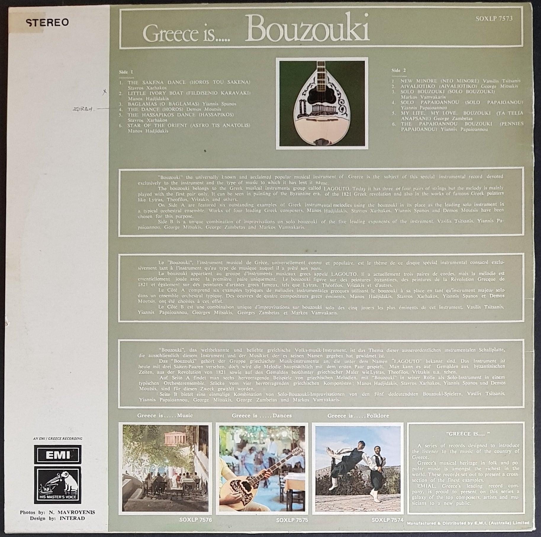 1973 His Master's Voice SOXLP-7573. Tsitsanis, Vamvakaris, Zambetas, Papaioannou, Xarhakos, Hadjidakis ++