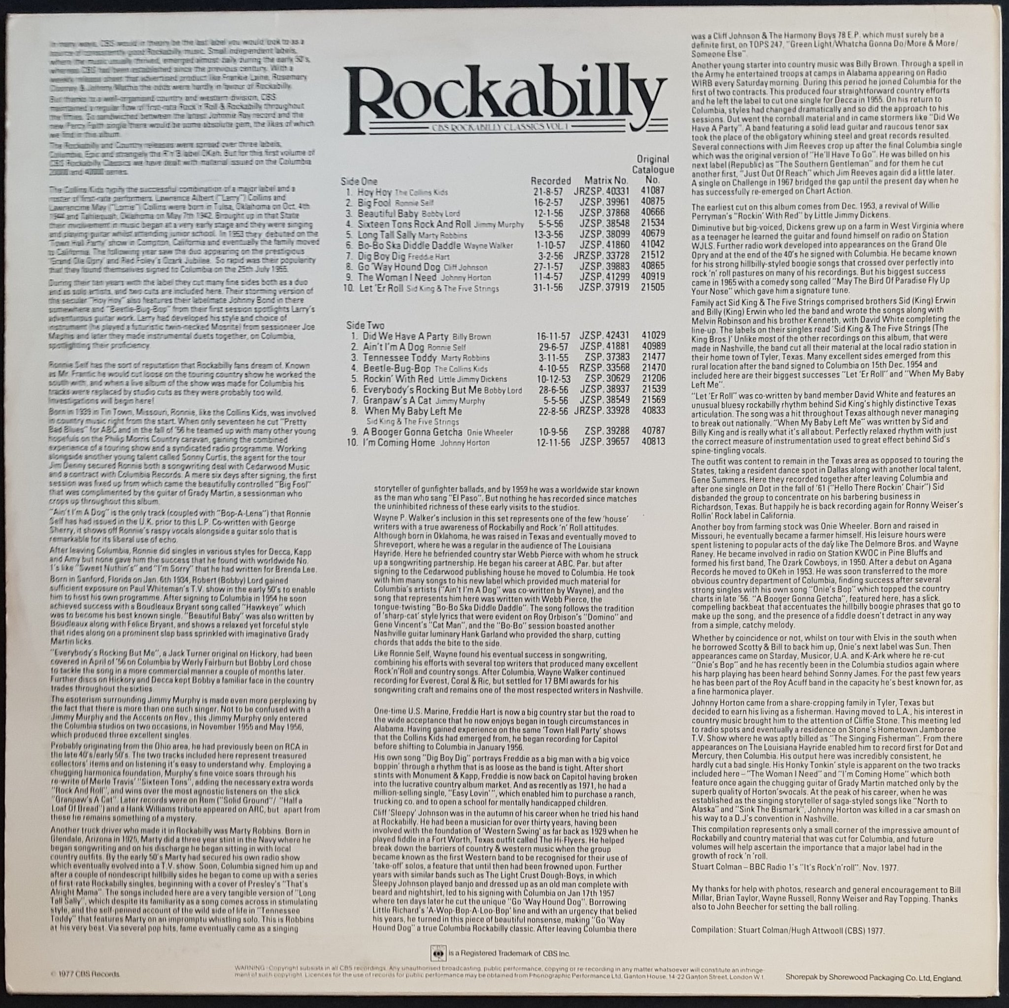 Compilation. 1977 CBS M CBS 82401. Ronnie Self, Collins Kids, Johnny Horton, Jim Murphy + Others. Minor wear on cover.